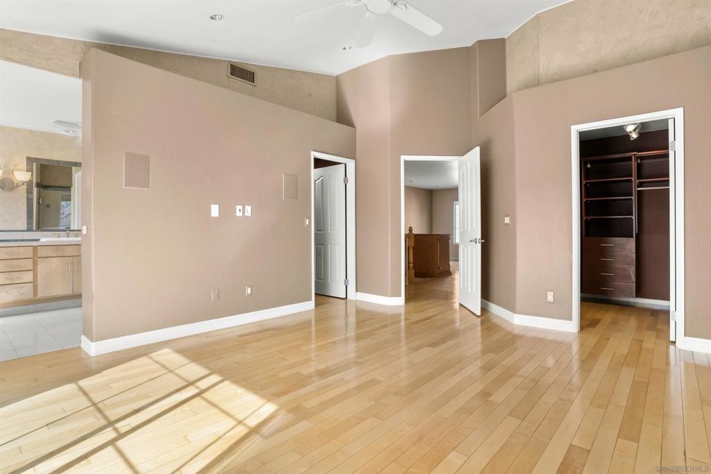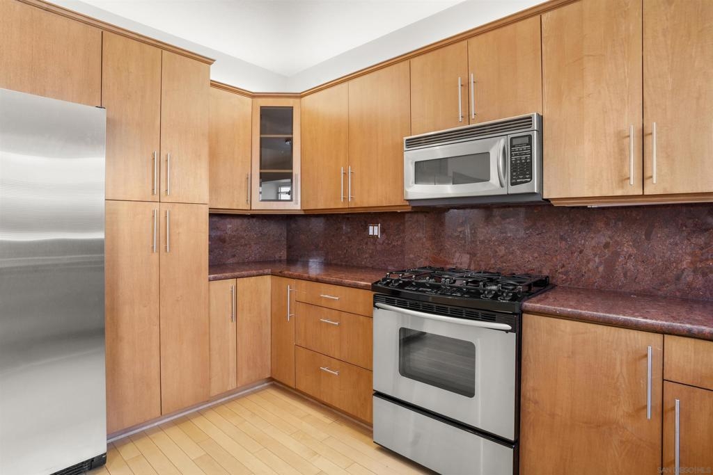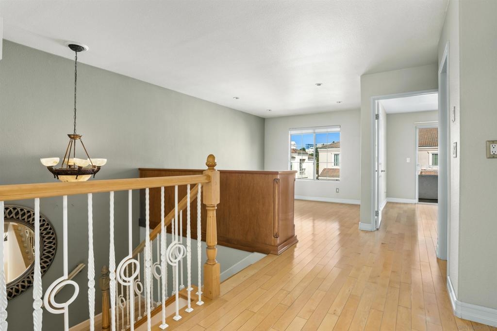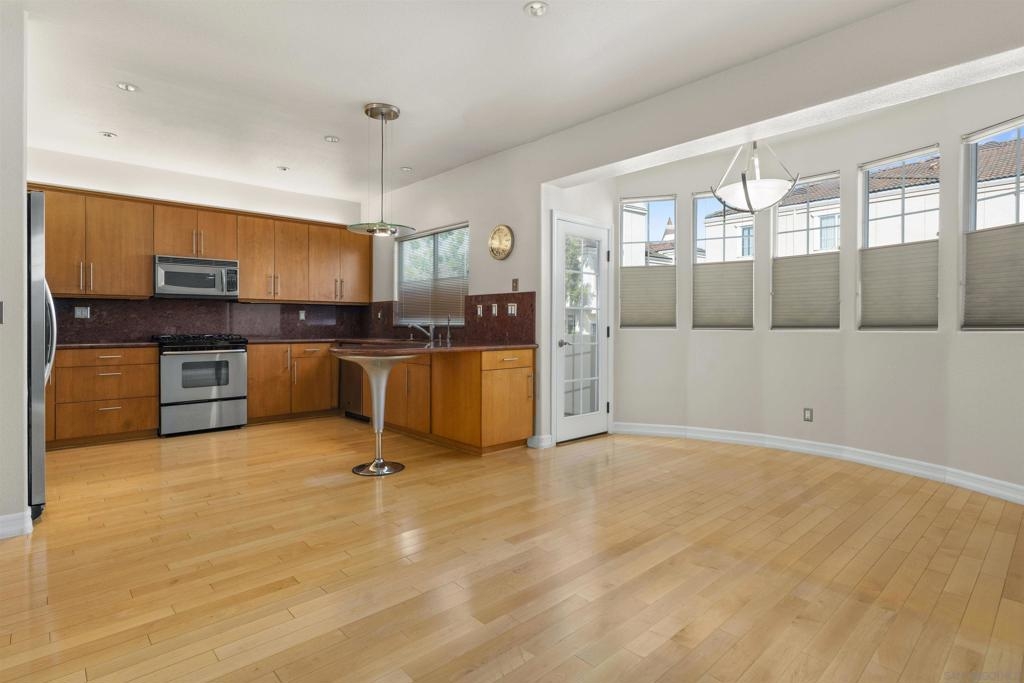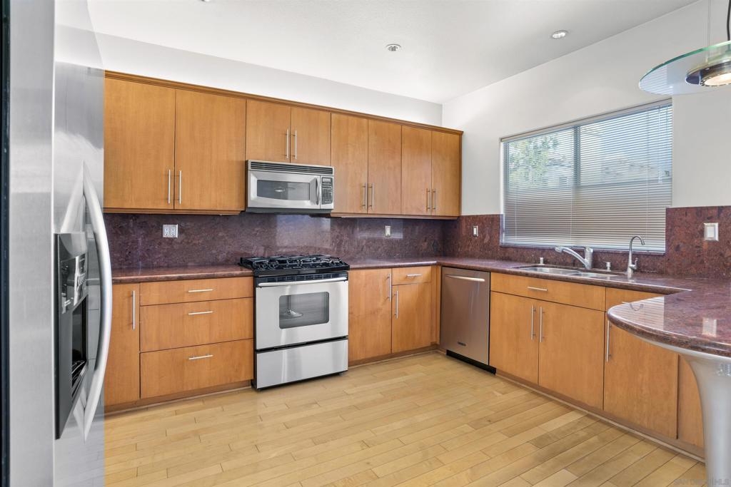 Beautiful Townhome in Gated Community of La Florentine. Bright, sunny home with cathedral ceilings, very spacious, open floor plan. Newer appliances with gas stove. Large living room, and master bedroom. Master bedroom has two walk-in closets. Custom wall lights in every room. Huge loft can be converted into a third bedroom. Family room off kitchen area. Solid hard wood flooring throughout home. Large front patio, large balconies off each bedroom. Oversized garage with extra storage area. Very quiet neighborhood. Walking distance to many restaurants and UTC Mall. Minutes to the beach and UCSD.