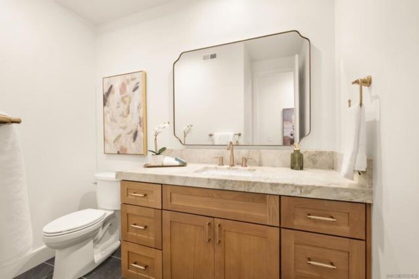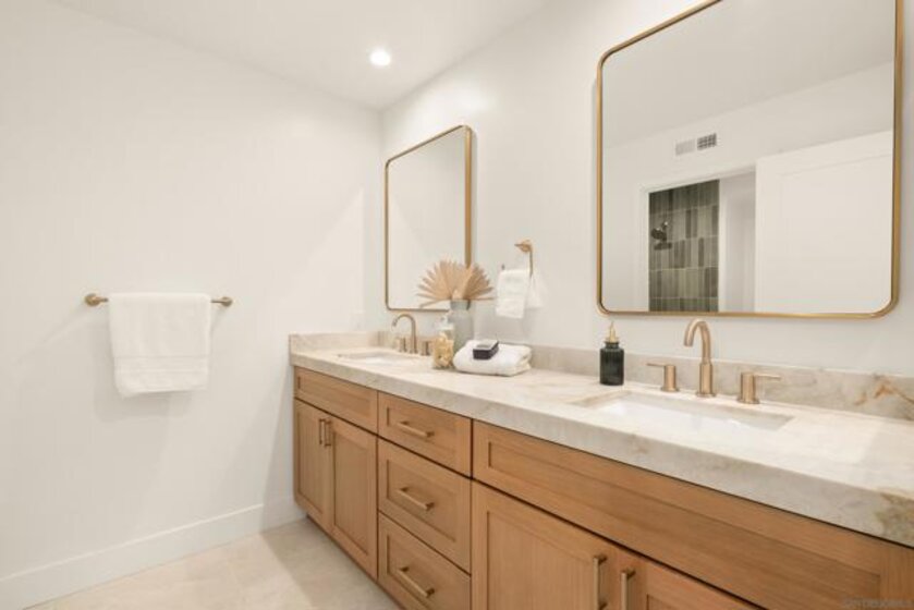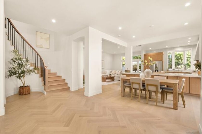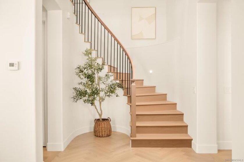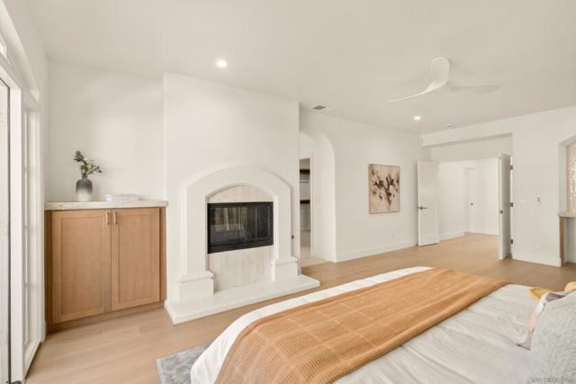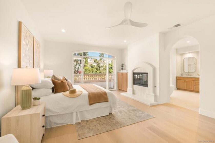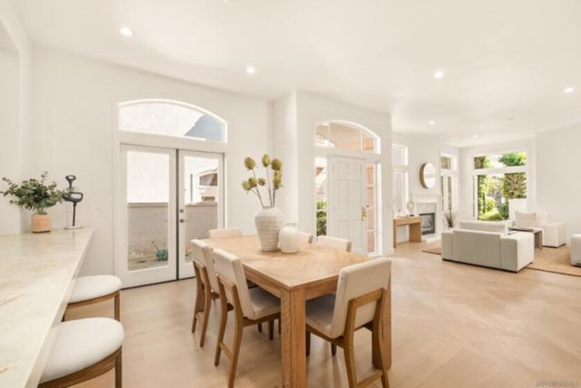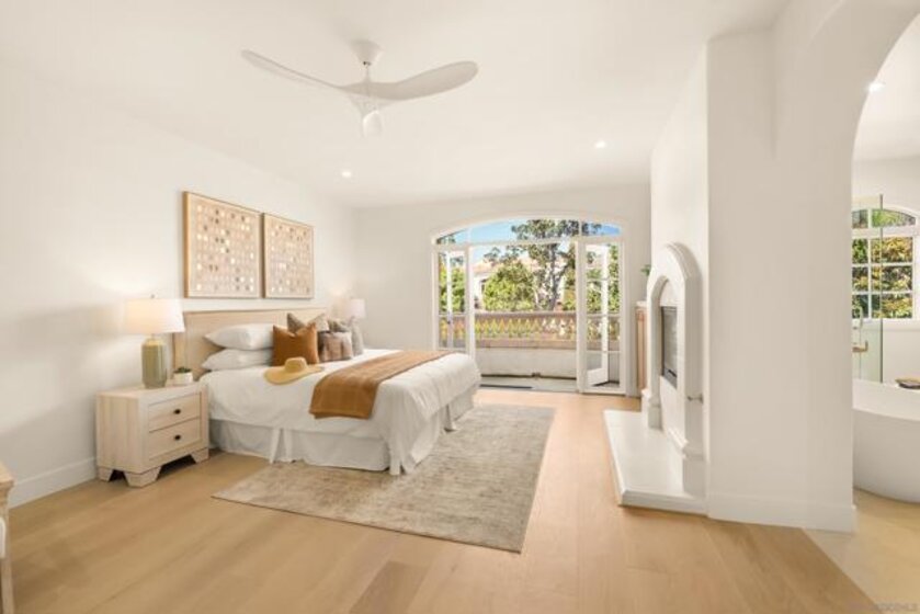 Welcome to one of the most desirable homes in Casabella. This beautifully remodeled 4-bedroom, 3.5-bath residence lives like a detached home and blends luxury with everyday comfort. From the rich wood floors with herringbone accents to the chef’s kitchen featuring Taj Mahal quartz and Thermador appliances, every detail has been carefully curated. Three fireplaces and a custom staircase add warmth and character throughout. The primary suite is designed as a private escape, complete with a walk-in closet, coffee and wine bar, dual-sided fireplace, and its own patio with peaceful views. Enjoy indoor-outdoor living with a charming patio perfect for al fresco dining, plus a 2-car direct-access garage and thoughtfully designed drought-tolerant landscaping. Perfectly situated just minutes from world-class shopping and dining at UTC, scenic parks, and major freeways, this home effortlessly combines serene privacy with unparalleled accessibility.