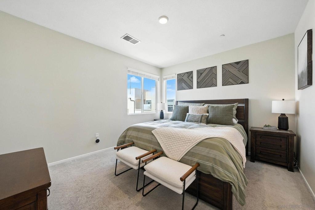 MOTIVATED SELLER! Welcome to this spacious and versatile 4-bedroom, 3.5-bath tri-level townhome in the highly sought-after Playa Del Sol community of South San Diego! This thoughtfully designed floor plan offers a full bedroom and bathroom on the first floor, perfect for guests, in-laws, or a private office space. The second level features a bright and open-concept layout with the living room, dining area, modern kitchen with large island, walk-in pantry, and a convenient half bath. Enjoy indoor-outdoor living with a private balcony just off the kitchen, ideal for your morning coffee or evening unwind. Upstairs on the third level, you’ll find a full laundry room, two secondary bedrooms with a shared bath, and the spacious primary suite boasting a walk-in closet and ensuite bath with dual sinks. Additional features include central A/C, an attached 2-car garage, whole house water filtration system and alkaline water faucet in kitchen, access to resort-style community amenities including a pool, gym, clubhouse, and playgrounds. Conveniently located near schools, shopping, dining, and easy freeway access. Don’t miss this opportunity to own a move-in ready home in a vibrant neighborhood! VA Assumable is an option.