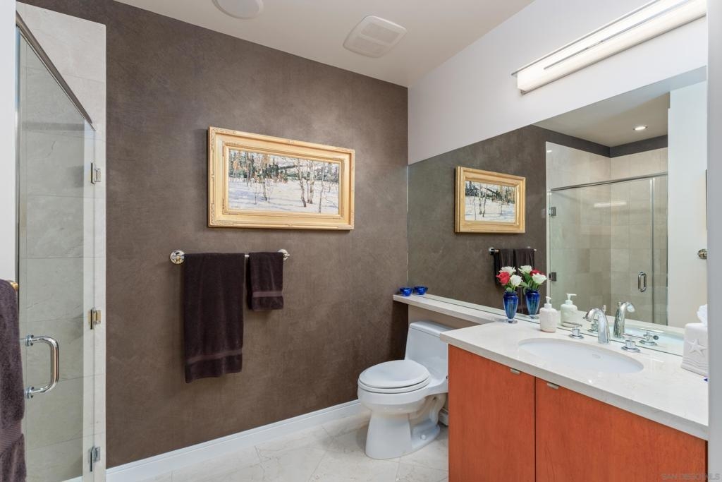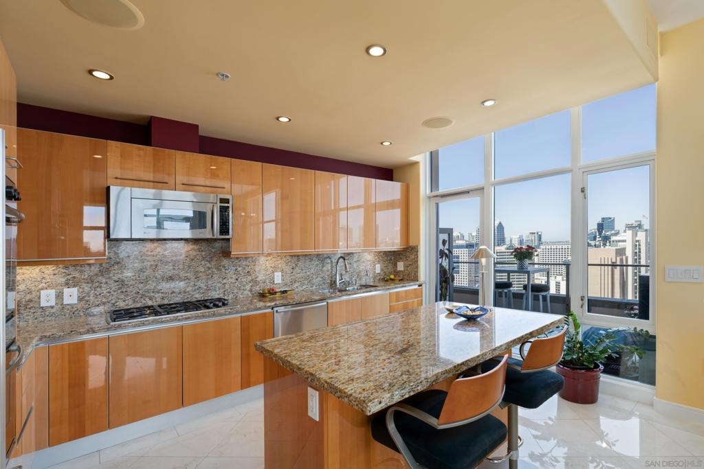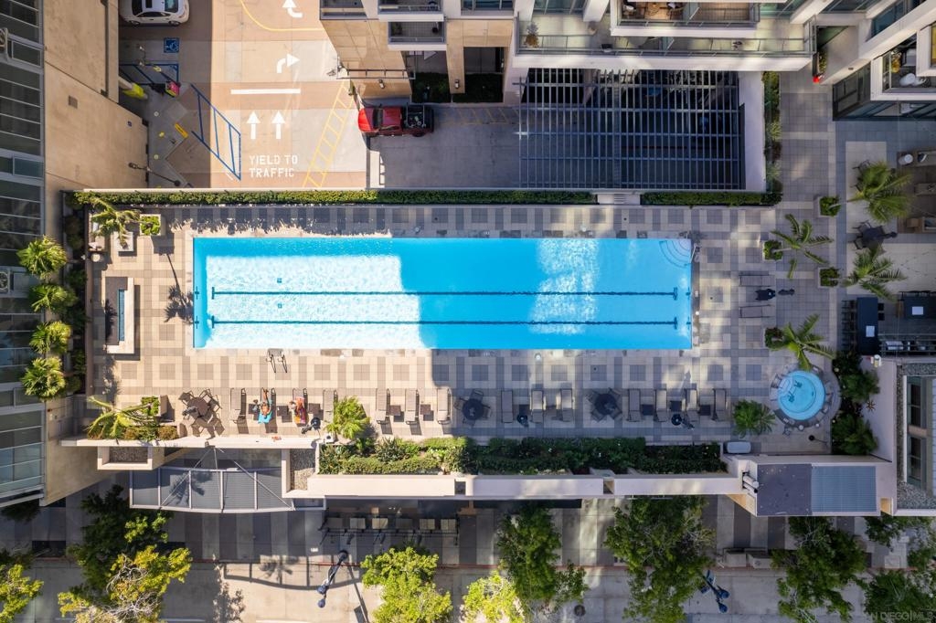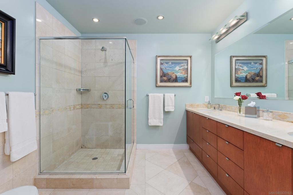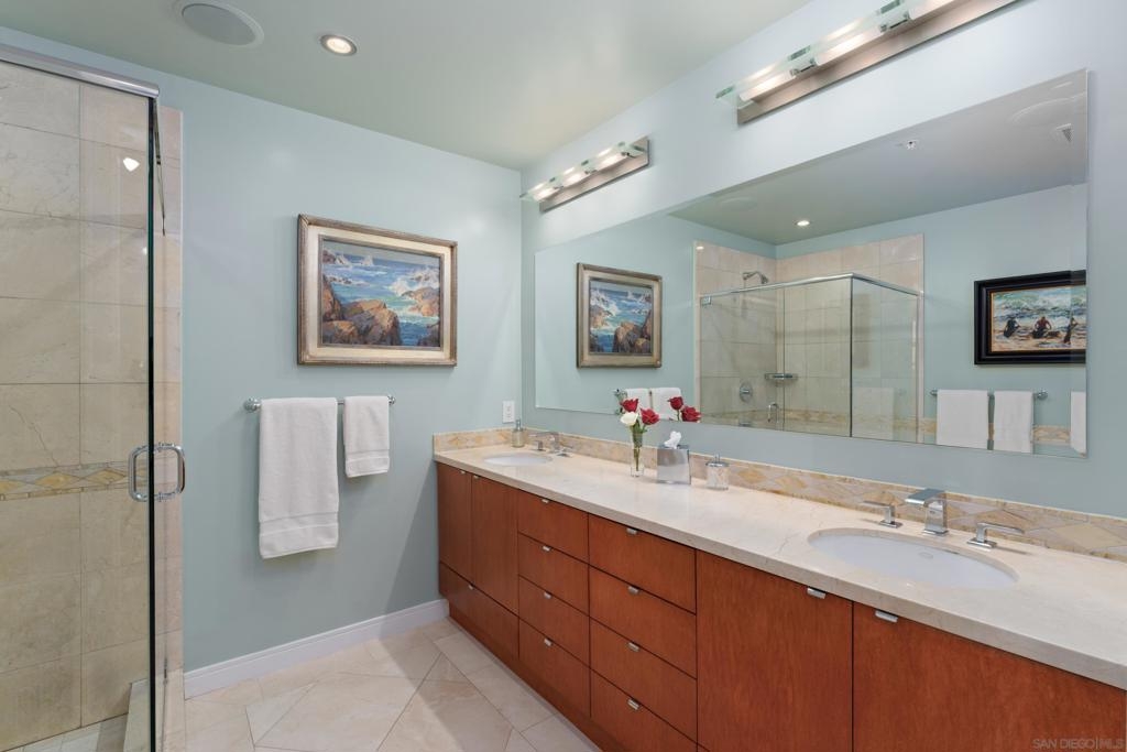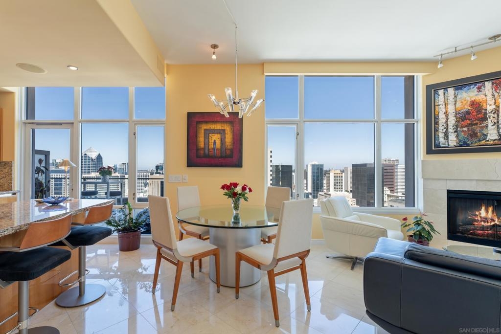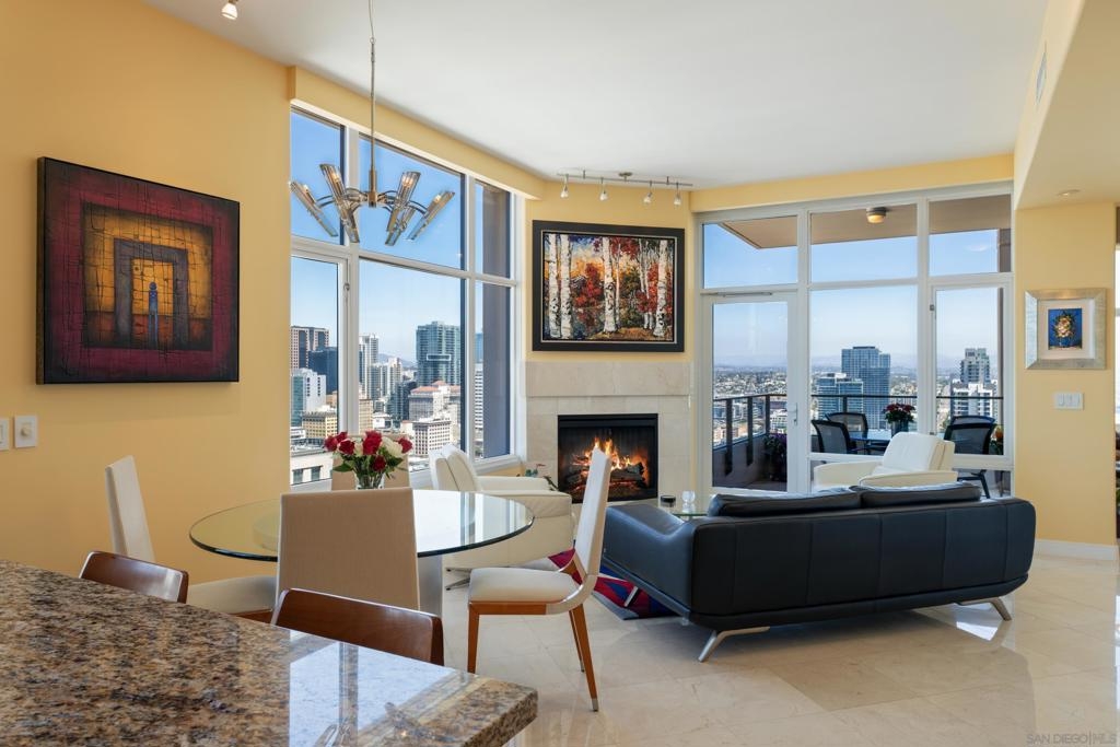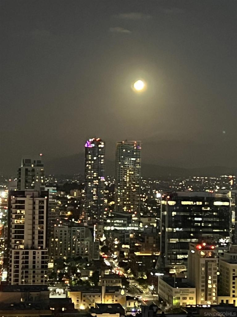 Over 300 feet above the city, this unit has incredible unobstructed 270-degree views from North San Diego Bay across the Downtown skyline to South Bay and even Mexico. Redesigned floor plan offers 10 Ft ceilings, THREE outdoor areas, 2 Bedrooms plus large office/den w/custom desk/AV area, 2 Baths, & 2 deeded parking spaces and storage area. Has motorized shades, artwork lighting, custom closets w/backing, audio speakers throughout and many more upgrades. Only 2 other units on the floor. One of the best locations and luxury bldgs. DT. SD living at it's finest! Pictures don't do it justice- must see in person!