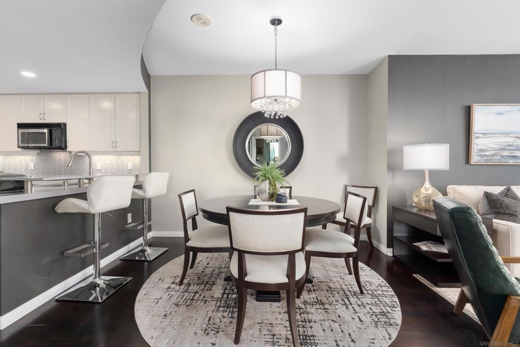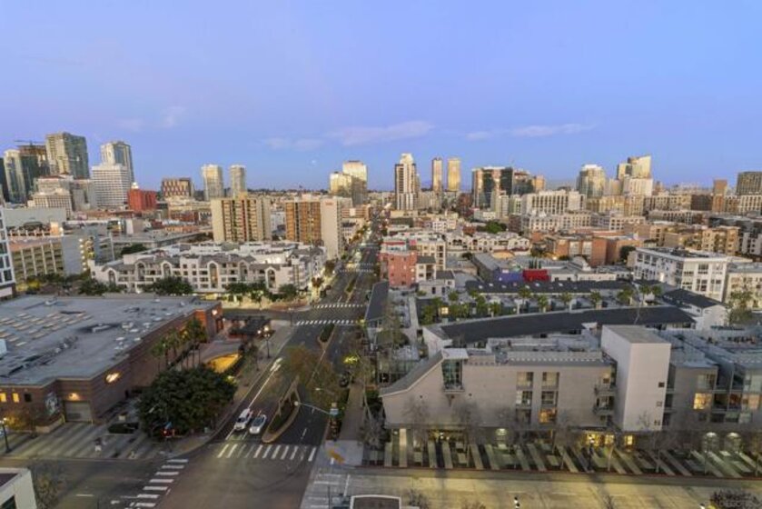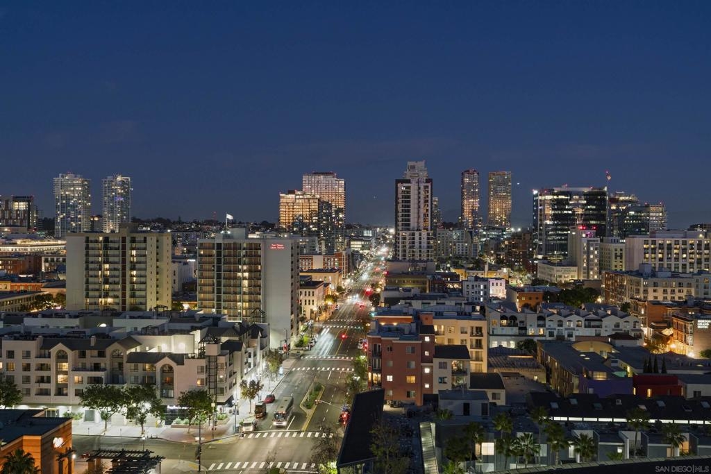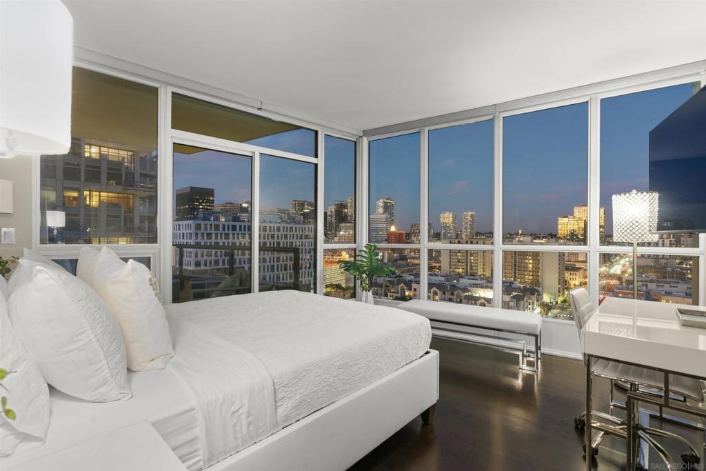 Enjoy stunning north-facing views of San Diego Bay and the Downtown skyline from this professionally designed 1-bedroom + den, 2-bath residence. Bright, open living spaces feature expansive windows and a spacious private patio ideal for indoor-outdoor living. The primary suite offers floor-to-ceiling windows, patio access, custom built-ins, a workspace, and an ensuite bath with dual sinks and a walk-in shower. A flexible den serves as a lounge or guest space with direct patio access. Offered fully furnished with designer pieces (approx. $30,000 value) from Arhaus, Pottery Barn, and Crate & Barrel, may be included at no additional cost and conveyed in current condition at close of escrow. Ideally located in the heart of the Marina District, Horizons offers an unbeatable downtown lifestyle just steps from the New Children’s Museum, Martin Luther King Jr. Promenade, Seaport Village, Petco Park, the Gaslamp Quarter, San Diego Bay, and the Marina. A children’s park and dog park are located directly behind the community. Resort-style amenities include a pool, spa, BBQ area, fitness center, concierge, security, billiard room, conference and club rooms, and 16 guest parking spaces. Everyday convenience is built in with retailers just an elevator ride away, including a bank, dry cleaner, Postal Annex, coffee shop, and more. The building has been refreshed with beautifully remodeled lobbies, upgraded hallways, and new unit doors with keypad access, all within walking distance to transit, dining, shopping, and Ralphs Signature Market.