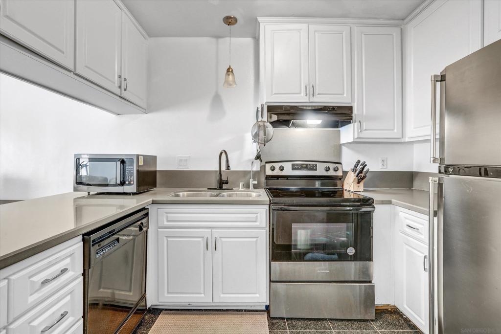 New Price Range starts 11/01. Stylish 2 story condo, 2 bdrms, 1.5 bths end-unit, located in the very awesome Clairemont neighborhood off Balboa & Genesee Avenues. Features: in-unit laundry room w/ full size W/D, water heater, cabinets & shelves for ample storage. Kitchen includes dishwasher, range/oven, refrigerator, new faucet, peeks into the dining/family room, eat-at bar, brand-new LVP floors. 1st level has a half-bath, additional storage area & glass slider-leads to a sunny private patio. The 2nd floor features two relaxing & quite bedrooms, full bath & 3 storage closets in the central hallway. The primary offers direct access to bath plus a huge three-door closet. The second bedroom has a built-in desk with shelves plus a two-door closet. Bath has tub/shower-freshly painted. The newer HVAC system was recently relocated into the attic, freeing up a large hallway closet. Balboa Towers Condominiums offers a pool & clubhouse, is conveniently located near excellent schools, multiple shopping centers & restaurants, community college, canyon trails, golf, BMX track, bus stops, and so much more! Just a short drive to Mission Bay and the incredible San Diego beaches. Notes: for street view refer to drone pictures, the HOA has just approved extensive plans for repairs on roofs, balconies, wood, stucco, painting, pool area, steps, landscaping and pavement. (For more information, please contact agent). 1 carport space included. Room dimensions are approximate. Come visit to see more!