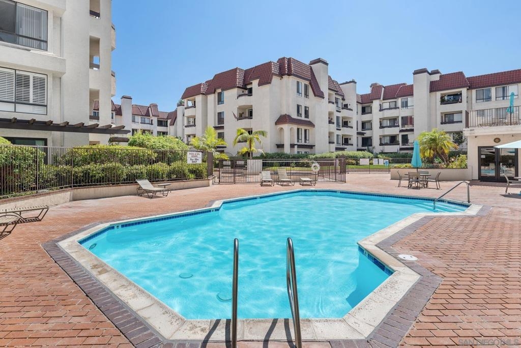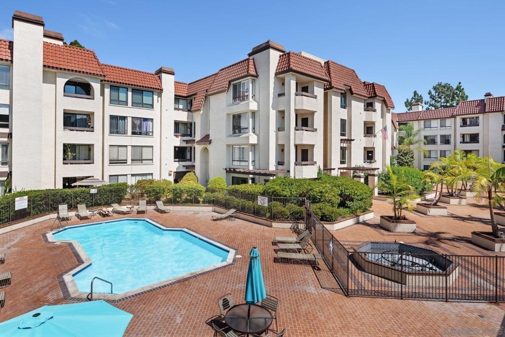 Resort style living in this 1BR/1.5BA 2nd floor condo in central Mission Valley in courtyard, overlooking gorgeous open sapce, open floor plan and spacious living room with fire place in the center. Lots of natural light. Central heat & A/C. Underground parking, this unit has one dedicated underground parking space and guest parking spaces. Gated community with onsite 24 hrs guard. Complex: Features: beautiful greenbelts, fountains, pond, pool, spa and gym.