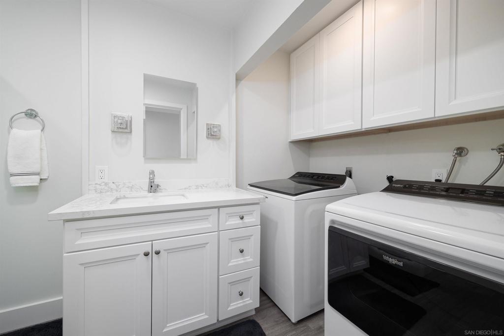 Don't miss this totally remodeled, bright and open Townhome at Friar's Village! Step inside this beautifully updated home with remodeled Kitchen, stainless steel matching Whirlpool Energy efficient appliances accented by durable Quartz counters, modern white cabinets, and patio/balcony. Freshly painted, with updated bathrooms as well. Primary Bedroom steps through sliding glass doors onto a patio and greenbelt, perfect for pets. With a reverse floorplan, one bedroom and bathroom are on the first floor, with two additional bedrooms and full bath, extra storage under the stairs and closets downstairs. This has a one car attached garage in addition to the uncovered gated carport. This home is move-in ready for the Holidays! Relish the proximity to shopping, dining and freeways. Close to USD campus, Tecolote Canyon, where you can explore hiking trails. The community pool, spa, and playground are at the Community HOA Clubhouse with inside amenities as well: ping pong, vending machines, and a billiard game room. Water, trash, landscape maintenance and partial insurance included with HOA fee. Furnishings are additionally negotiable.