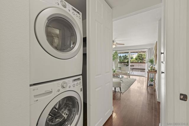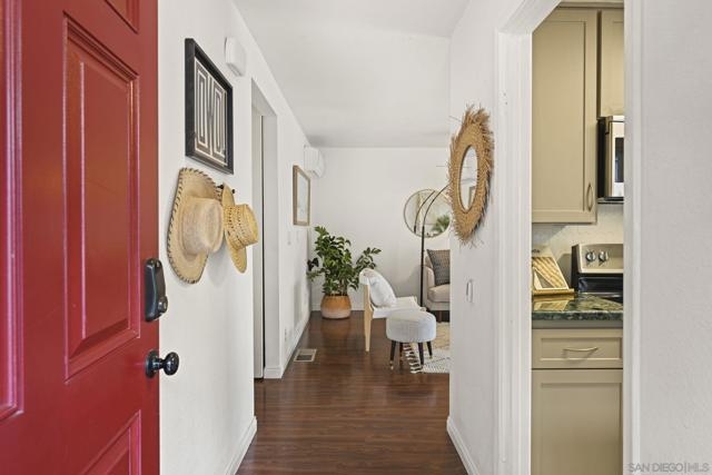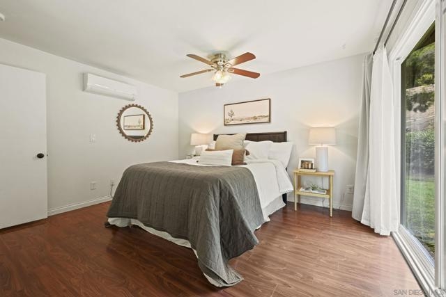 FHA & VA APPROVED! This bright end-unit townhome checks all the boxes, eligible for FHA and VA buyers, private setting, and gorgeous open views. The 2 bed / 1 bath layout feels airy with new dual-pane windows & sliders and three energy-efficient mini-splits for year-round comfort. An open living area flows to a private view patio, and the backyard opens to a well-kept community greenbelt, perfect for relaxing or entertaining. Practical perks: in-unit washer/dryer closet and an attached 2-car garage with direct access. As an end unit, enjoy no neighbors above or below. Community amenities include pool, spa, rec room, BBQ areas, and playground. And again, the complex is FHA & VA approved, making financing more accessible and attractive. Prime Mission Valley location: walk to USD, minutes to Fashion Valley, Mission Bay, and Downtown. Low-maintenance living with serious convenience and charm. Seller-reported updates include a new electrical panel (2025), new garbage disposal, added kitchen backsplash, new kitchen faucet, a painted bathroom vanity with new hardware, new bathroom light fixtures, a new medicine-cabinet mirror, new hallway light fixtures, storage racks installed in the crawl space, and a wooden surf rack in the garage. Buyer/agent to verify all permits and specifications to their satisfaction.