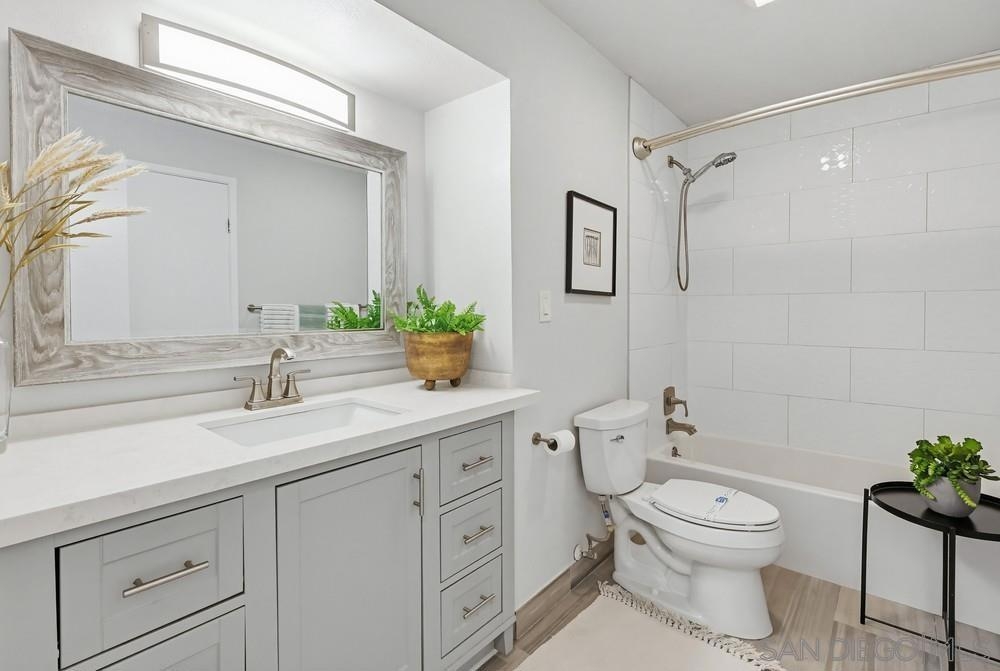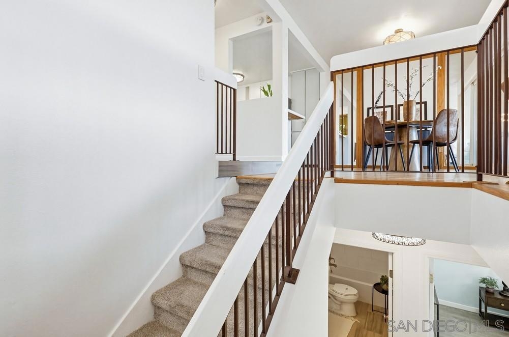 Located in the highly desirable Friars Village community in Fashion Valley West, this charming 2-bedroom, 1.5-bath townhome offers an incredible opportunity to live in one of San Diego’s most convenient and centrally located neighborhoods. Just minutes from the University of San Diego and major freeways and shopping centers. The home features a bright and functional layout that lives much like a single-family residence. A private front courtyard offers the perfect setting for entertaining, outdoor dining, or simply relaxing in your own peaceful space. The main level includes the living room, dining area, kitchen, and a spacious balcony with beautiful mountain views, creating an inviting space for everyday living and gatherings. A fully renovated half bathroom is also conveniently located on this level. Downstairs you’ll find two private bedrooms filled with natural light, offering a quiet retreat separated from the main living areas. Additional highlights include a 1-car attached garage and ample guest parking within the community. The HOA has recently completed updates to the roof and plumbing, and the HOA dues include water and trash services, adding value and convenience for homeowners.