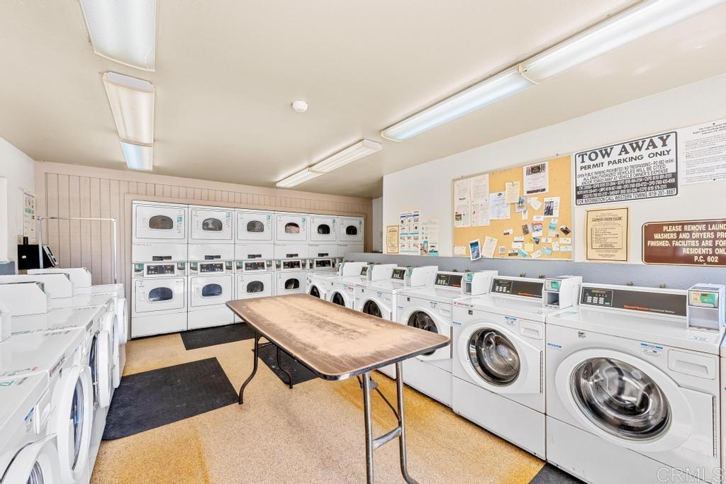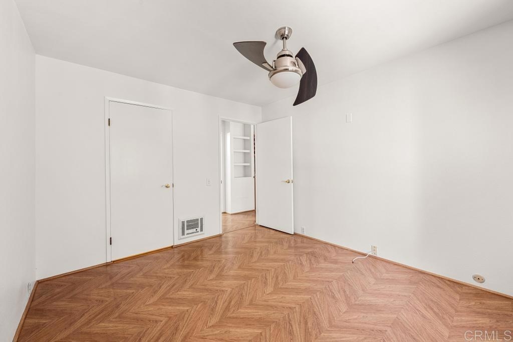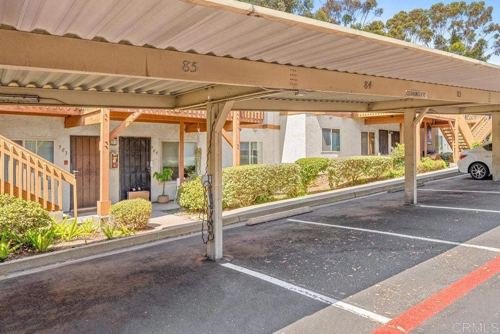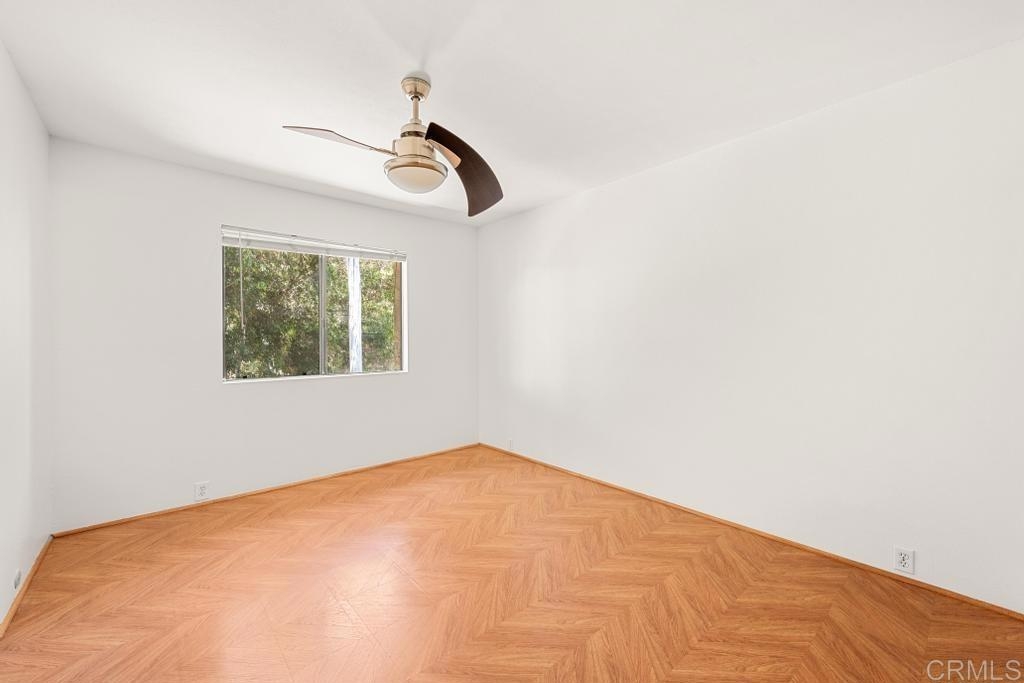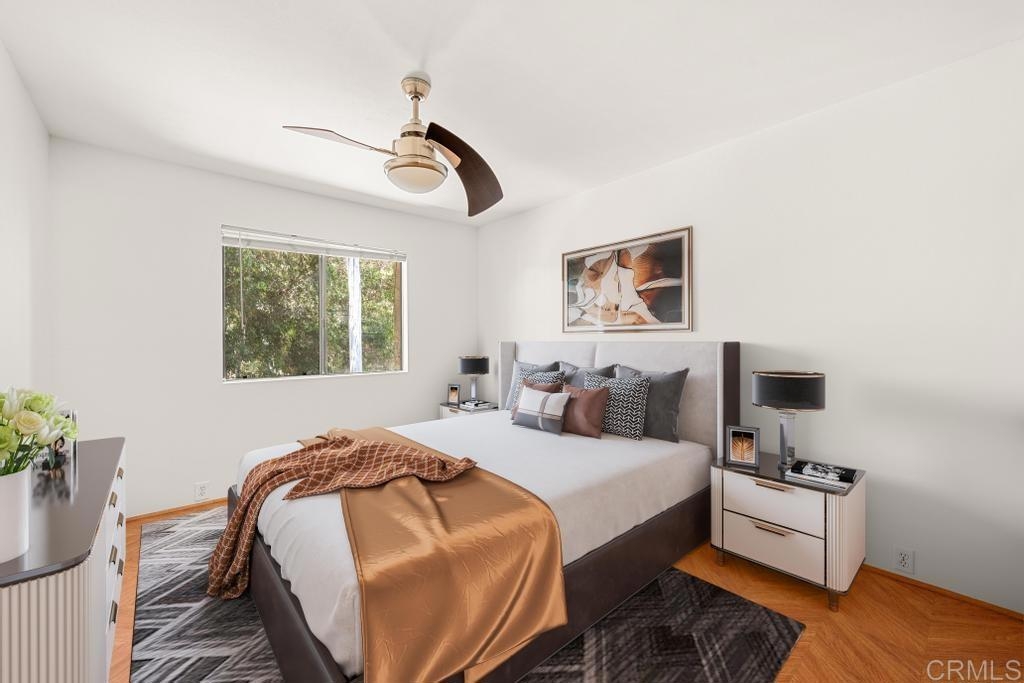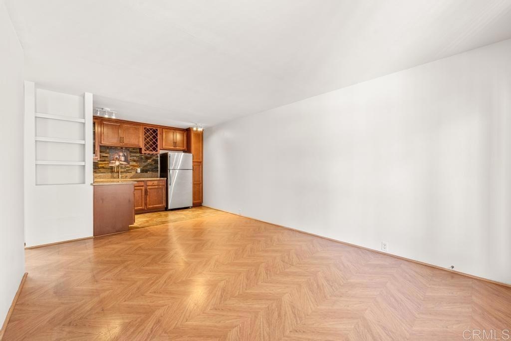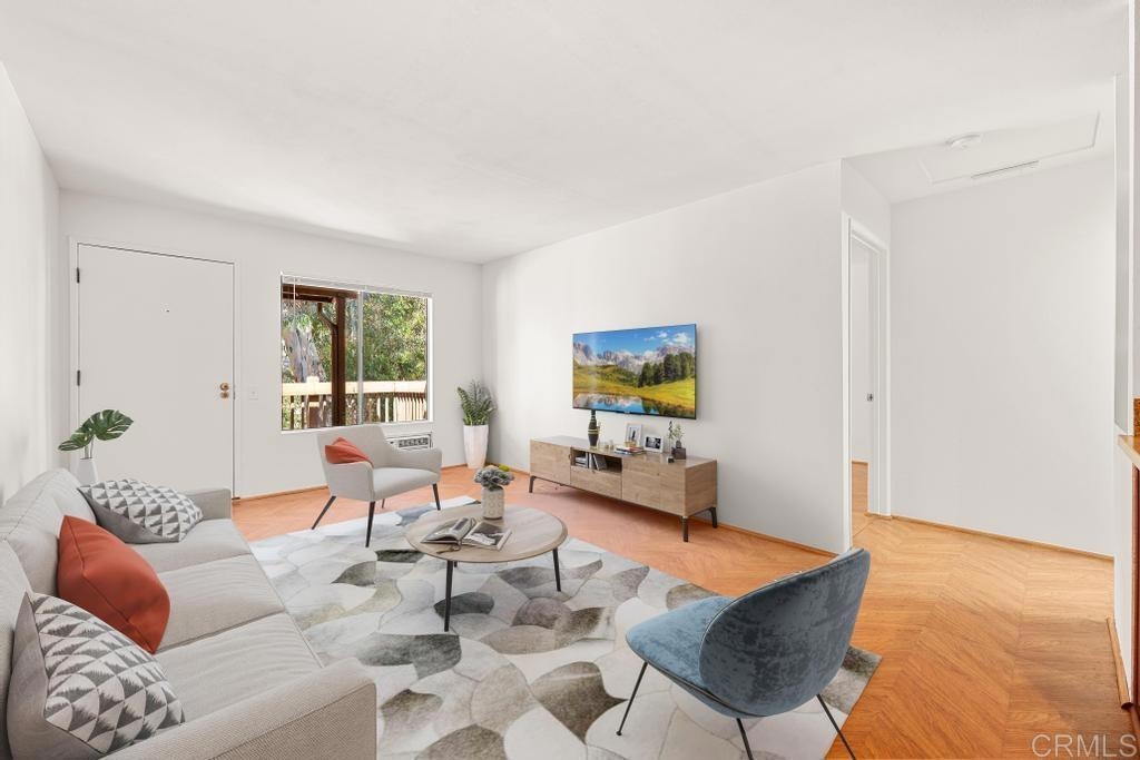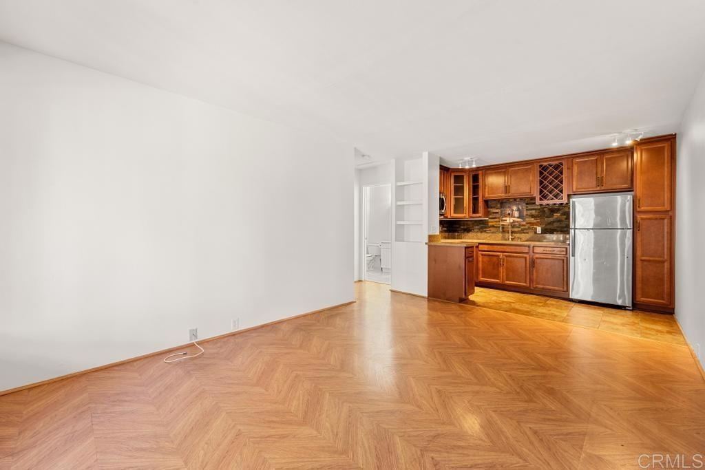 Welcome to your dream haven in the heart of it all! This charming 1 bedroom, 1 bathroom condo of modern elegance feels much larger than 506 sq feet. Step inside to find stunning herringbone hardwood floors leading you through a bright, freshly painted interior. The updated kitchen is beautiful featuring upgraded cabinets, a stainless fridge, microwave and sleek quartz counters. You'll love the convenience of the in-unit combo washer/dryer and the spacious walk-in closet. Sip morning coffee on your large porch and enjoy the perks of having the only parking stall with an electric car charger. Nestled in a prime location, walk to Snapdragon Stadium, easy access to I-15, and very close to shopping and food. The low fee HOA has a ton of amenities - refreshing pool, billiard room, dog park, and BBQ area. It's the perfect blend of style, comfort, and convenience!