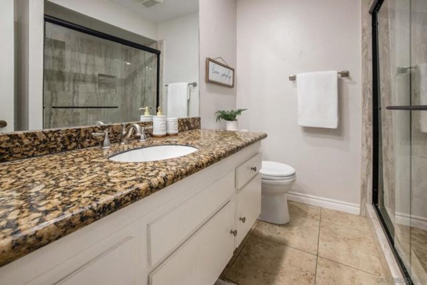 Welcome to this spacious and comfortable Fashion Valley condo, featuring two primary-style bedrooms on opposite sides of the home, each with a walk-in closet, direct balcony access, and its own bathroom for the perfect blend of privacy and comfort. Enjoy the extra-large balcony overlooking a peaceful stream, where you can relax, unwind, or even fall asleep to the soothing sound of running water. Inside you’ll find recessed lighting, updated electrical panel, ceiling fans throughout, central A/C, and a cozy electric fireplace. Recent updates include a fully remodeled kitchen, a full bathroom remodel with added dual sinks, and partial renovations done to the second bathroom—all completed within the last 3 years. This end-unit home also comes with two parking spaces: one in the gated underground garage and one outdoor assigned space, both conveniently located directly adjacent to the unit. The HOA covers cable TV, water, trash, and more while the community-provided amenities include a pool, spa, gym, clubhouse, tennis courts, barbecue area, and pet area...all set in a gated, beautiful park-like setting. And when you are ready to explore the town, you will have easy access to everything since you will find yourself perfectly situated near Fashion Valley Mall, beaches, downtown, and all of San Diego’s best attractions. VA approved with a VA assumable loan at 4.719%! Don’t miss your chance to own this rarely available gem in one of San Diego’s most desirable locations!