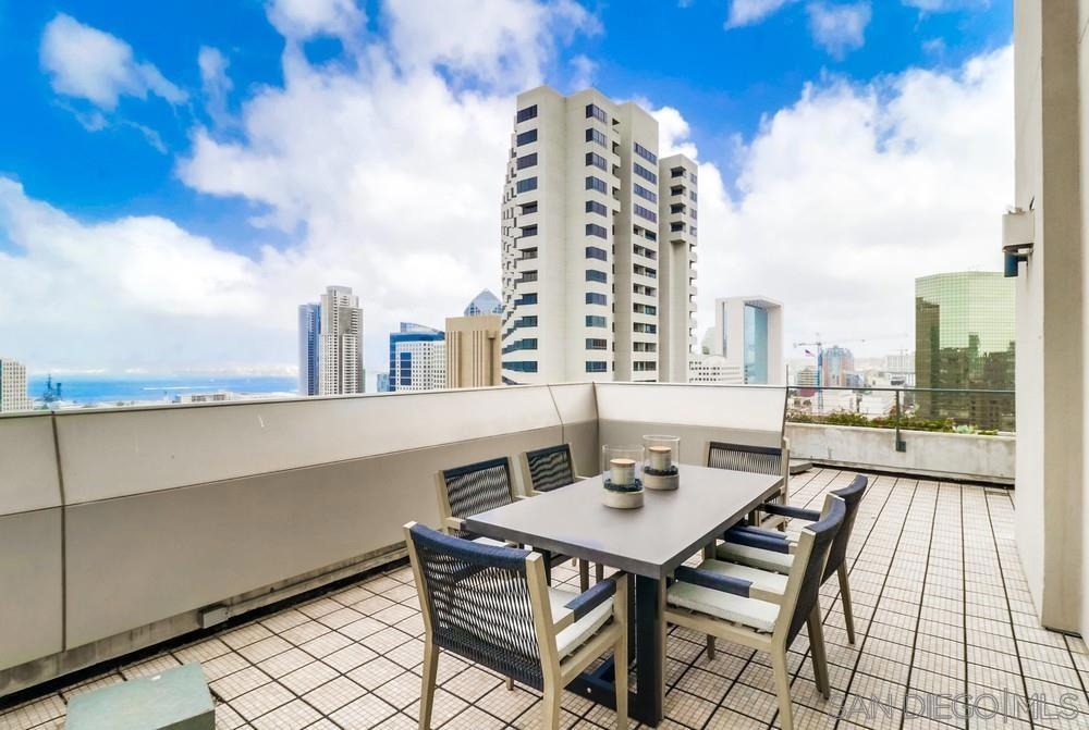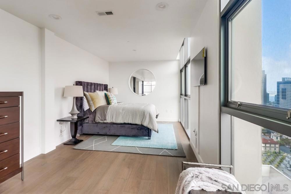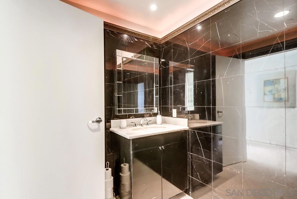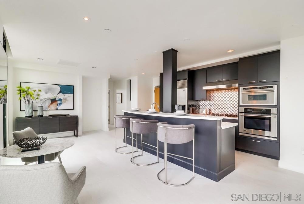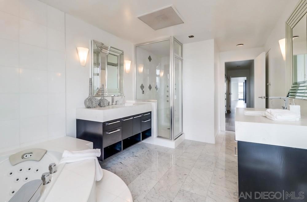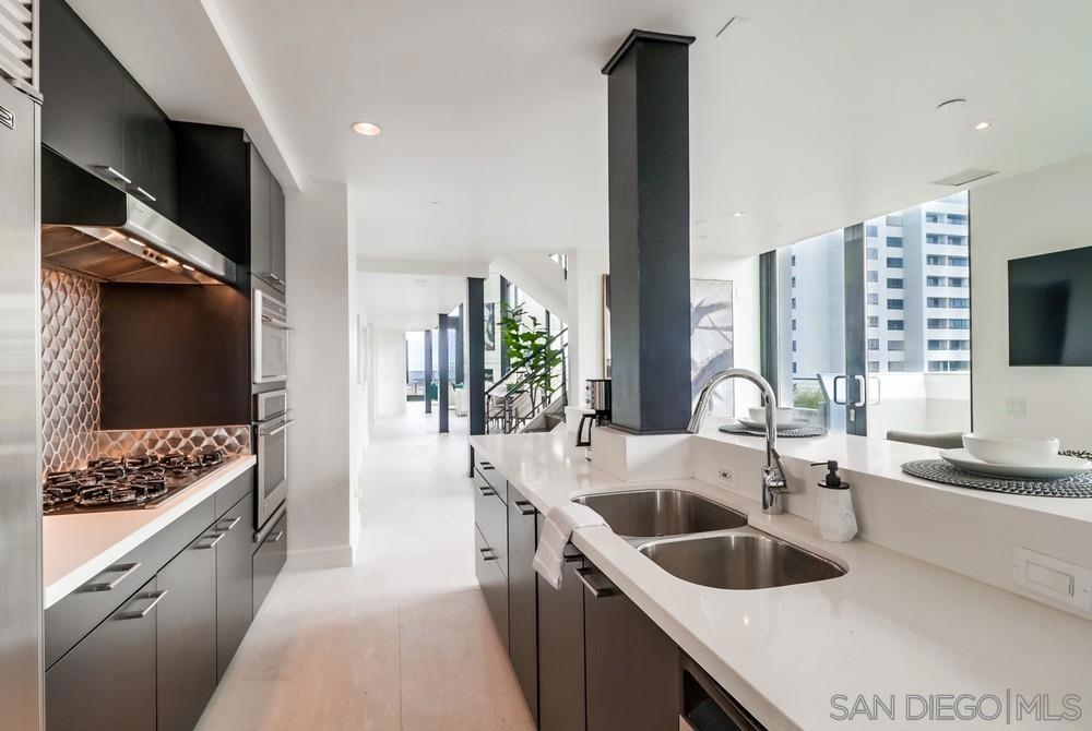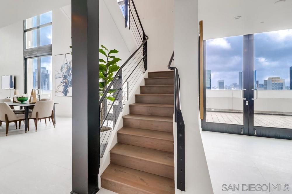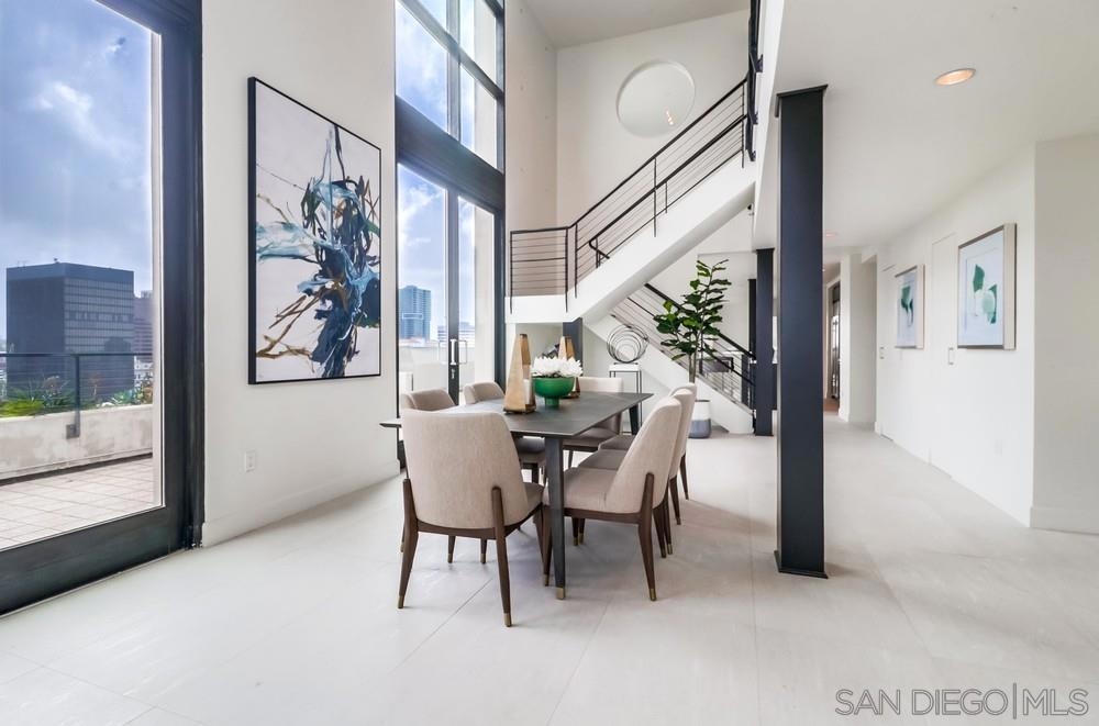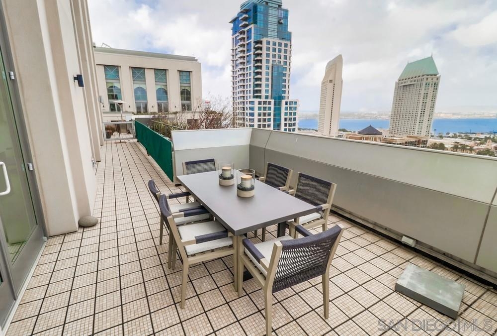 Crowning the Renaissance tower in the Marina District, this two level penthouse delivers sky-high luxury with 4 bedrooms, 6 baths and approximately 4,391 square feet of designer remodeled and furnished interiors. Wide plank hardwood, 18 by 36 porcelain tile, custom cabinetry, curated lighting and premium fixtures set a refined tone throughout. The dramatic living and dining great room rises to 20 foot window walls and showcases a marble clad fireplace, while sliding glass doors open to a spectacular wraparound terrace of more than 1,400 square feet that frames unobstructed views over San Diego Bay, the Pacific, Point Loma, Coronado and the city skyline. The gourmet kitchen offers professional appliances, slab stone counters, a breakfast nook and space for a full wine refrigerator, and an adjacent entertainment lounge features a full bar. A guest suite with fireplace and ensuite bath plus a private office sit on the main level. Upstairs, the primary retreat enjoys its own fireplace, boutique closet, dual vanities, sauna, oversized jetted tub and glass shower, while a loft style guest suite provides a sitting room, fireplace and spa bath with steam shower. Residence includes two side by side parking spaces and a storage room. Renaissance amenities encompass a twenty four hour concierge, pool and spa, fitness center and barbecue courtyard, all moments from Seaport Village, the Gaslamp Quarter and Petco Park. This is true penthouse living with no neighbors above and nothing comparable downtown.