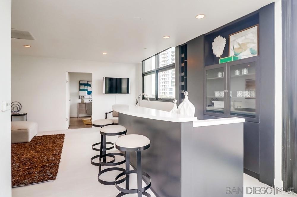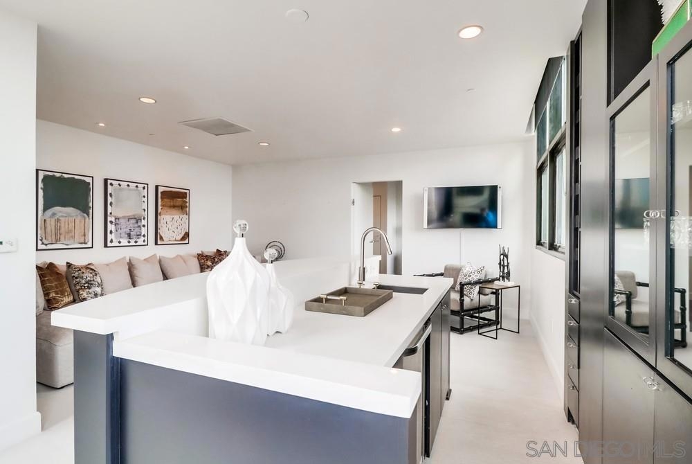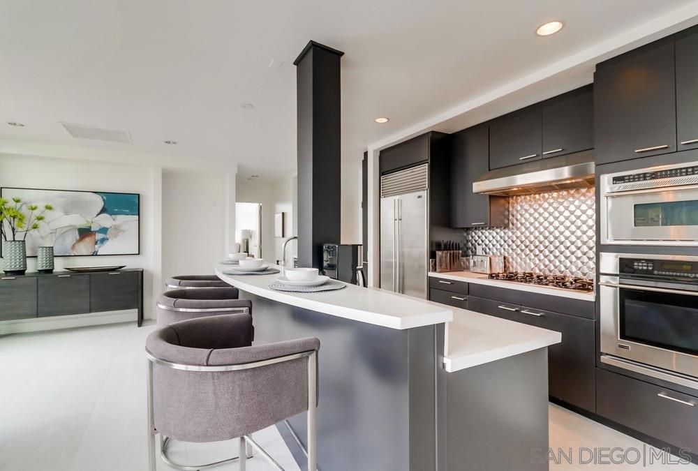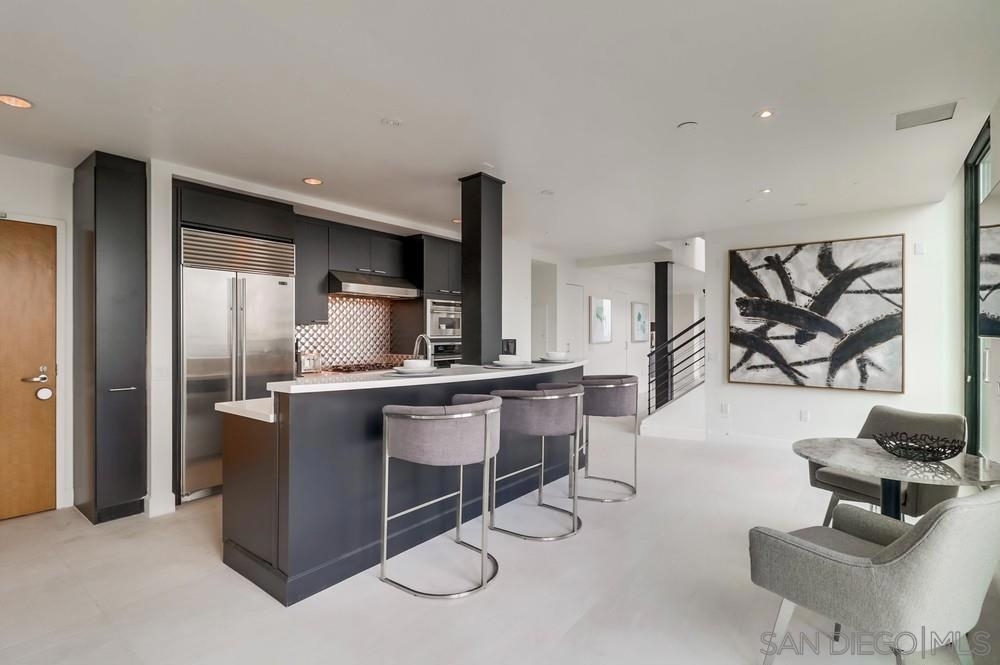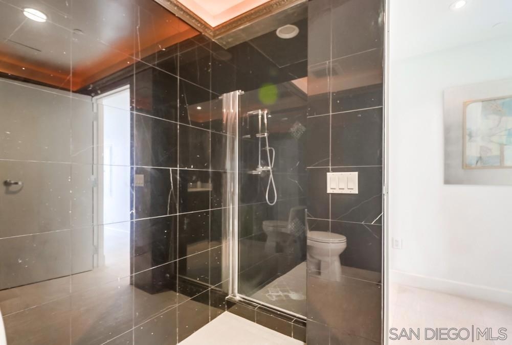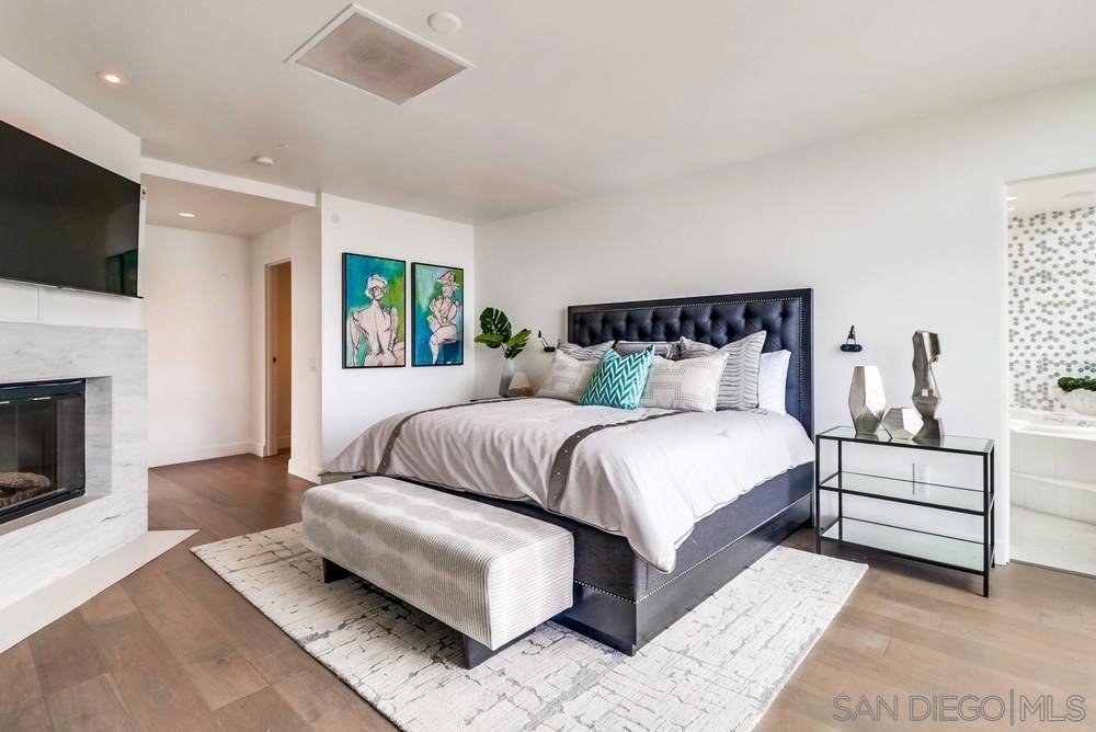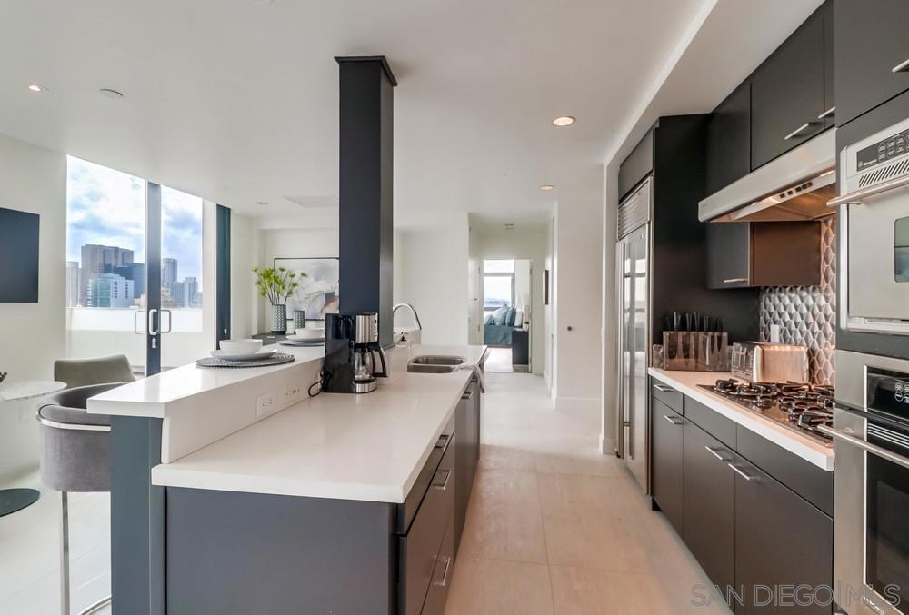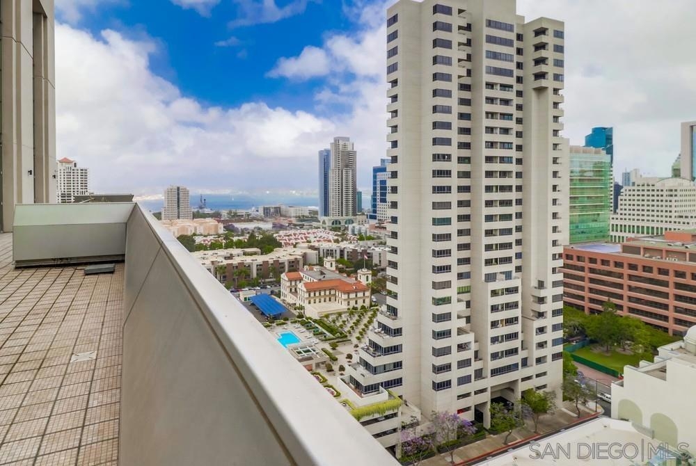 Crowning the Renaissance tower in the Marina District, this two level penthouse delivers sky-high luxury with 4 bedrooms, 6 baths and approximately 4,391 square feet of designer remodeled and furnished interiors. Wide plank hardwood, 18 by 36 porcelain tile, custom cabinetry, curated lighting and premium fixtures set a refined tone throughout. The dramatic living and dining great room rises to 20 foot window walls and showcases a marble clad fireplace, while sliding glass doors open to a spectacular wraparound terrace of more than 1,400 square feet that frames unobstructed views over San Diego Bay, the Pacific, Point Loma, Coronado and the city skyline. The gourmet kitchen offers professional appliances, slab stone counters, a breakfast nook and space for a full wine refrigerator, and an adjacent entertainment lounge features a full bar. A guest suite with fireplace and ensuite bath plus a private office sit on the main level. Upstairs, the primary retreat enjoys its own fireplace, boutique closet, dual vanities, sauna, oversized jetted tub and glass shower, while a loft style guest suite provides a sitting room, fireplace and spa bath with steam shower. Residence includes two side by side parking spaces and a storage room. Renaissance amenities encompass a twenty four hour concierge, pool and spa, fitness center and barbecue courtyard, all moments from Seaport Village, the Gaslamp Quarter and Petco Park. This is true penthouse living with no neighbors above and nothing comparable downtown.