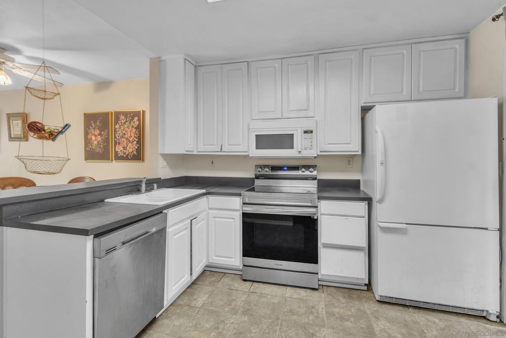 Discover this beautifully designed 2-bedroom, 1-bathroom condominium in the highly sought-after Carefree community of San Carlos. This residence features an inviting open-concept layout that seamlessly integrates the kitchen, living room, and dining area, perfect for modern living and entertaining. Key Features: - Contemporary Kitchen: With original cabinetry and a breakfast bar that seats two, this kitchen balances style and functionality for casual meals. - Prime Location: Situated near Cowles Mountain and Mission Trails, this home offers excellent access to outdoor activities for nature enthusiasts. - End Unit Privacy: Enjoy the benefits of an end unit that provides enhanced privacy along with a spacious private patio, ideal for relaxation and gatherings. - Convenient Parking: The property includes a one-car attached garage and an assigned parking space for added convenience. - Resort-Style Amenities: Residents can take advantage of a gated swimming pool, recreational areas, playgrounds, sports courts, and BBQ facilities. This exceptional condominium offers a unique chance to embrace a vibrant lifestyle in a welcoming community. Don’t miss your opportunity to make this property your new home!