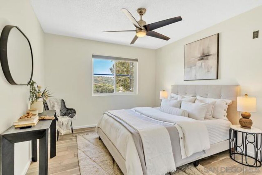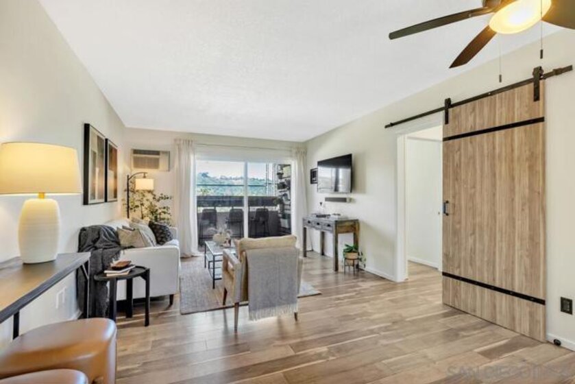 Situated on the top floor in the highly sought-after Allied Gardens/Del Cerro neighborhood, this exquisitely upgraded one bedroom, one bath residence offers an exceptional blend of style, comfort, and tranquility.. The thoughtfully renovated kitchen showcases sleek countertops, modern appliances, and refined finishes which open seamlessly into a bright and inviting living space featuring wood flooring throughout. Recent enhancements include fresh interior paint, new windows, and an updated sliding glass door. Step onto your private balcony to take in serene, panoramic views of the surrounding mountains and nearby golf course. Additional highlights include in-unit laundry, a ceiling fan for added comfort, and a dedicated parking space. Residents enjoy access to a well-maintained community featuring a pool and spa, while the exterior has recently undergone extensive upgrades, including refreshed balconies and stairwells, adding to the property’s overall appeal. Situated on the top floor in the highly sought-after Allied Gardens/Del Cerro neighborhood, this exquisitely upgraded one bedroom, one bath residence offers an exceptional blend of style, comfort, and tranquility.. The thoughtfully renovated kitchen showcases sleek countertops, modern appliances, and refined finishes which open seamlessly into a bright and inviting living space featuring wood flooring throughout. Recent enhancements include fresh interior paint, new windows, and an updated sliding glass door. Step onto your private balcony to take in serene, panoramic views of the surrounding mountains and nearby golf course. Additional highlights include in-unit laundry, a ceiling fan for added comfort, and a dedicated parking space. Residents enjoy access to a well-maintained community featuring a pool and spa, while the exterior has recently undergone extensive upgrades, including refreshed balconies and stairwells, adding to the property’s overall appeal.