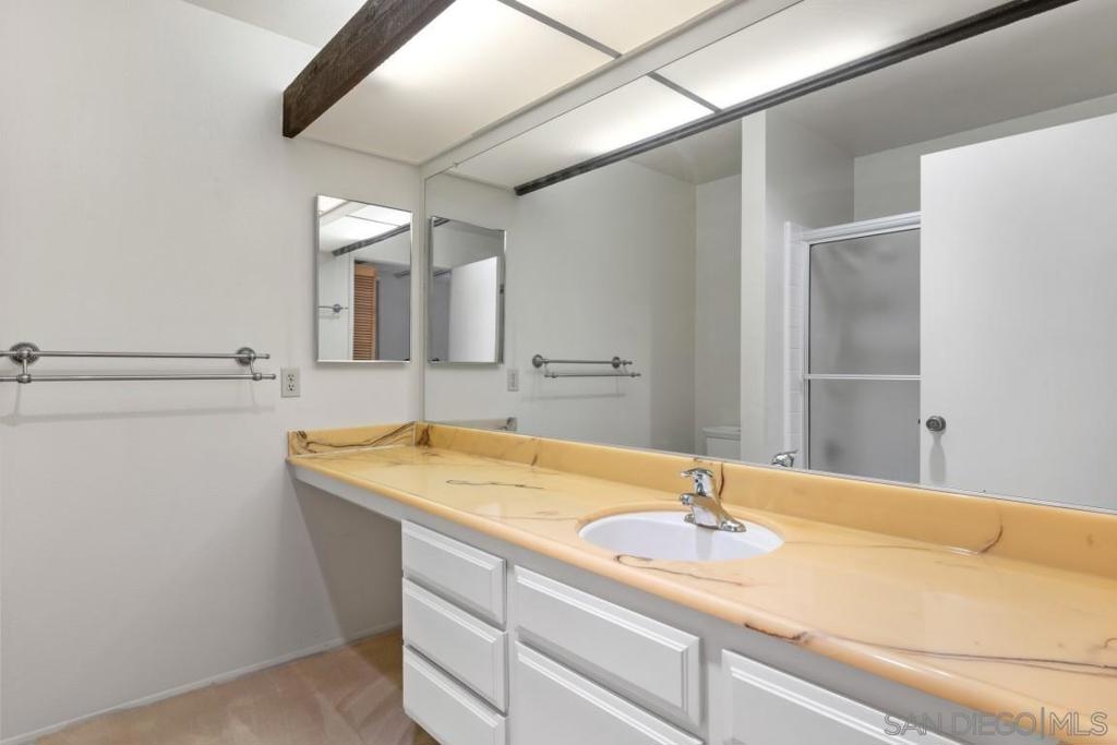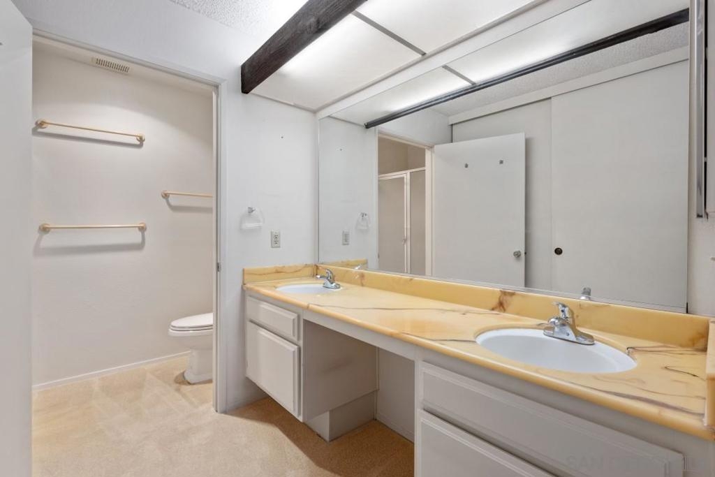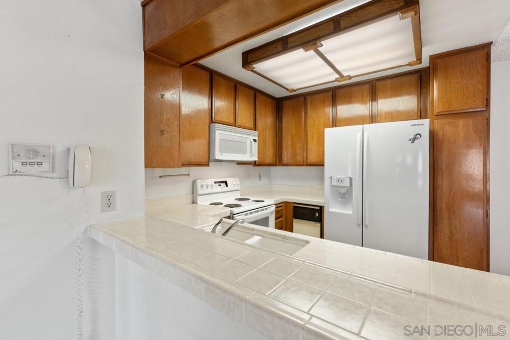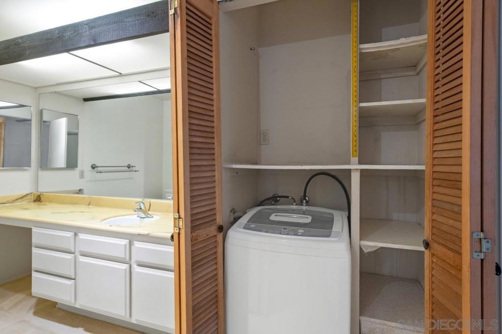 This spacious 2 bedroom located in the desirable Mission Greens is tucked away from Friars Rd and I-8 with views of trees, flowers, shrubs and newly renovated ponds in the middle of the complex from living room, bedrooms and balcony. This desirable split-bedroom floorplan offers the astute buyer/investor the option to have 2 separate living areas with bathrooms or offers tenants the ability to have 2 suites in one unit. Large closets, A/C, fireplace and a rare 1 car garage with its own storage closet and one unassigned open spot, this unit offers additional community storage on the same level as the condo. Additionally, you will also find an in-unit laundry closet with hookups along with a community laundry room in the building on each floor. VA approved complex with convenient amenities including a community pool, spa, exercise room, sauna, guest parking and dog area. HOA includes hot water, landscape maintenance and trash. Contracted Cable is part of the HOA dues. Located close to Fashion Valley Mall, trolley, restaurants, shopping and so much more.