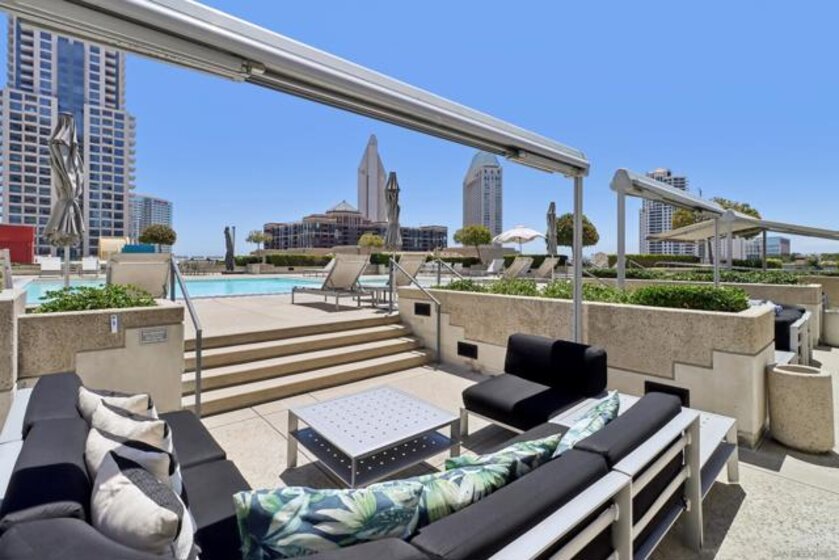700 Front Street, #1402 welcomes you to this beautifully remodeled tower home! Luxury living inside the Meridian offers spectacular views spanning from the coast of Mexico to Point Loma, including iconic sights such as the San Diego Bay, Coronado Bridge, Island, and the legendary Hotel Del Coronado. This stunningly remodeled luxury residence features dual primary suites, ocean-view living spaces, and refined modern design. The chef’s kitchen boasts a waterfall island with microwave drawer, hidden walk-in pantry/laundry, stainless steel appliances, double-drawer dishwashers, and quartz countertops with full-height backsplash. Designer bathroom finishes, illuminated vanities, and one of the bathrooms includes a spa-inspired wet room with ocean views and remote privacy glass. The living room has a dry bar with wine fridge, custom fireplace, and mirror-accented dining wall. Elegant engineered hardwood floors, recessed lighting, trimless LED baseboards, and Bluetooth speakers set a sophisticated tone. Smart-home features include Nest thermostat, Bluetooth lighting, USB outlets, modern electric panel and sleek concealed fire sprinklers complete this exquisite home. Enjoy resort-style amenities in one of San Diego’s most prominent fixtures in San Diego’s skyline. Residents at The Meridian enjoy 5-star white-glove service, including valet parking, 24/7 concierge, doorman, on-site management, and exclusive amenities such as: 2 deeded parking spots, 52 guest parking space, the Plaza Level consists of the Fitness centers, Heated pool, spa, and sauna, 5 rentable guest suites and the Meridian Room that is available for catered entertainment. EV charging stations, Service elevator and personal storage. Specialty shops and restaurant on the first floor. Experience unmatched comfort, privacy, and sophistication in a building that rivals East Coast grandeur—with the laid-back luxury of San Diego coastal living.