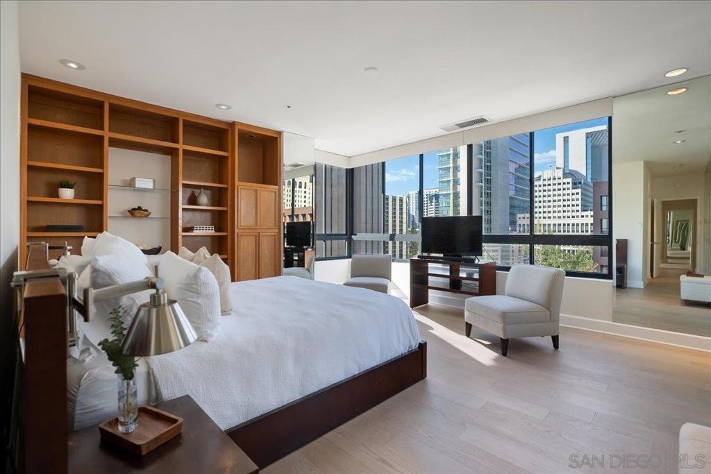 Experience true full-service luxury living at the iconic Meridian in San Diego’s Marina District. This beautifully positioned property offers one of the building’s most desirable layouts with southwest exposure, filling the home with natural light while capturing city and bay views. Expansive windows wrap the main living areas, creating a bright and open atmosphere that seamlessly connects indoor living with the spacious private terrace—perfect for enjoying San Diego sunsets and coastal breezes. Life at The Meridian offers a truly elevated full-service lifestyle with 24-hour concierge, doorman, valet parking, porter service, on-site management, and security. Residents enjoy resort-style amenities including a heated pool, spa, fire-pit lounge areas, cabanas, BBQ areas, and a beautifully landscaped outdoor plaza spanning over half an acre. The building also features two fully equipped 24-hour fitness centers with saunas and steam rooms, Peloton bikes, guest suites, conference and entertainment rooms, and a wide range of resident services and social events. Perfectly located, you are just moments from the waterfront, Seaport Village, Little Italy, world-class dining, shopping, and San Diego’s vibrant cultural and entertainment scene. Meridian is known for its exceptional construction, including approximately 32 inches between floors—a rare feature providing superior sound insulation and privacy. This is more than a residence — it’s a lifestyle of service, luxury, and effortless downtown living in one of San Diego’s most distinguished high-rise communities. More than a residence — it’s a lifestyle. PLEASE REFER TO THE ATTACHED DOCUMENTS FOR IMPORTANT INFORMATION REGARDING UNIT #605 AND THE MERIDIAN COMMUNITY. The lobby is currently undergoing a full renovation and is expected to be completed by the end of March or early April.