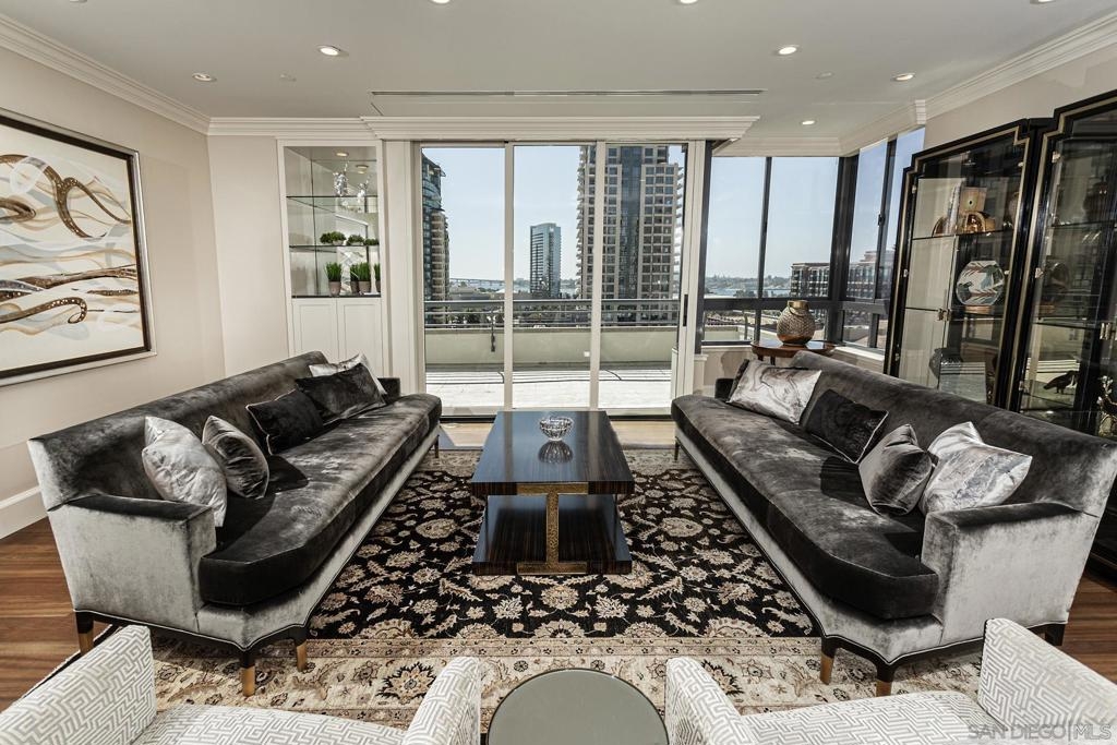 Impeccably crafted with refined details rivaling the most exclusive of urban mansions, this sophisticated MERIDIAN home of over 4,100 square feet dazzles at every turn. From the classical use of crown moldings, exquisite cabinetry, and wood inlay flooring to the artfully lit hallway for showcasing personal treasures and art, the custom William Ohs gourmet kitchen, and exquisite designer finishes throughout, this inviting, one-of-a-kind residence is a showcase in sophisticated living. The seamless flow of expansive living areas accommodates multiple layout options for lavish large-scale or intimate experiences. Two generous, inviting terraces overlooking the amenity-rich 2/3-acre outdoor plaza offer panoramic views of the sparkling San Diego Bay, Pt. Loma, and city lights. Separated for privacy are two elegant primary suites, an optional bedroom/office, a secondary entrance, a laundry/home center, two balconies, and more. Classically designed with abundant storage and beautifully maintained top-of-the-line details throughout. This gracious, stunning home is a must-see to truly appreciate all of the refined details. Don't miss this opportunity to enjoy the best of city living within the five-star-caliber MERIDIAN Condominiums community. Please see the supplement for more lifestyle and service details. Thank you. Enjoy every amenity MERIDIAN Condominiums has to offer amidst the comfort and convenience of downtown, San Diego living. MERIDIAN CONDOMINIUMS,a landmark residential community, deliberately conceived and impeccably crafted remains without peer. Incomparable services are offered by an attentive staff consisting of 24 hour ParkingAttendants for Residents and their Guests, Door Person, Porter, Concierge and more. A completely separate service entry with loading dock and service elevator is staffed with Porters to accept packages, deliveries and tradespeople. For your convenience, groceries, packages, dry cleaning, luggage and more can be delivered to your door! Impeccably maintained, pride of ownership abounds. Whether you are entertaining on a grand scale or merely relaxing by the sparkling pool, MERIDIAN’s accommodations are sure to exceed your needs. The MERIDIAN Room, designed with a catering kitchen, bar, cloakroom, and restrooms offers an elegant entertaining environment for both large scale and intimate parties. Elegant formal gardens, a grove of citrus trees, an outdoor spa and adjoining fire pit complement the inviting pool and lounging/sunning areas on the unique 2/3 of an acre plaza elevated above the city space. Other features adding to the convenience and comfort at MERIDIAN are two newly renovated spa and fitness facilities, five recently remodeled lovely Guest Suites to welcome visiting friends and family, specially curated private art gallery, and conference room ideal for business meetings and presentations or small-scale entertaining. At the foot of MERIDIAN, lies Meridian Place, offering a myriad of fine retailers to conveniently complete the needs of your lifestyle.Salon and spa services, cosmetic dentistry, dry cleaning, fine dining and much more are literally an elevator ride away. Take advantage of MERIDIAN’s premier downtown location and explore the countless restaurants, elegant shopping, cultural attractions and miles of scenic pathways. Enjoy a lifestyle that is without parallel . . .enjoy MERIDIAN living!