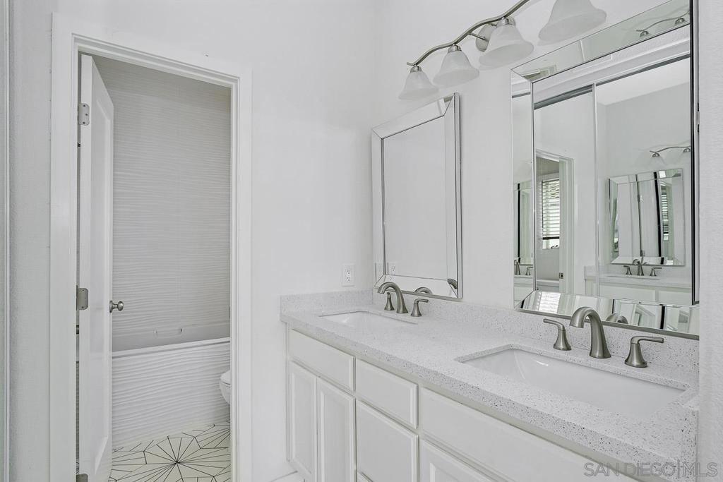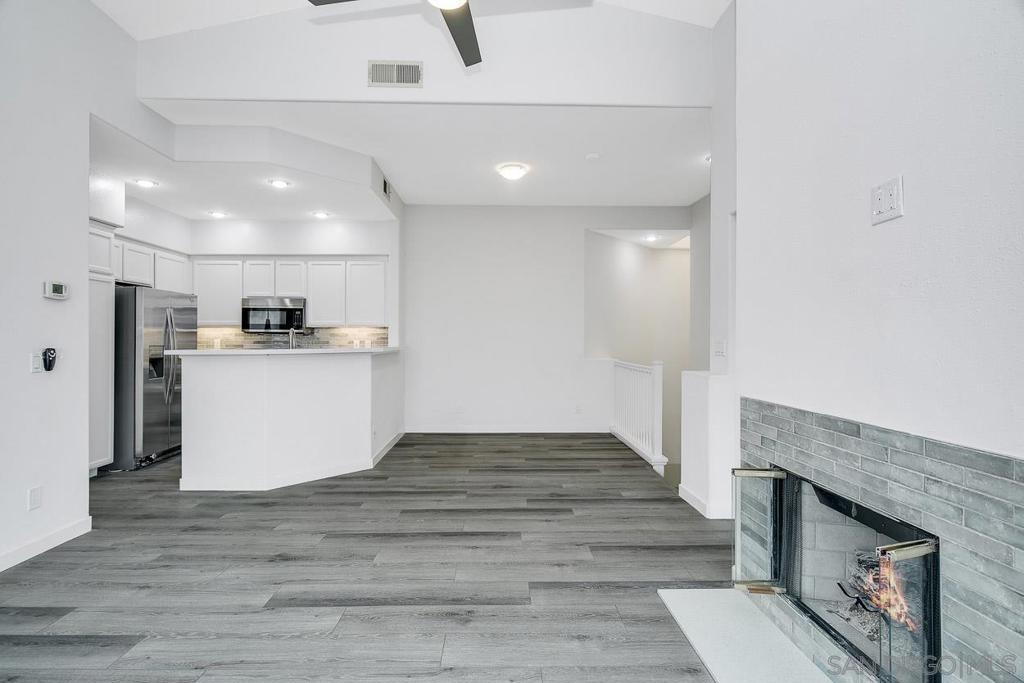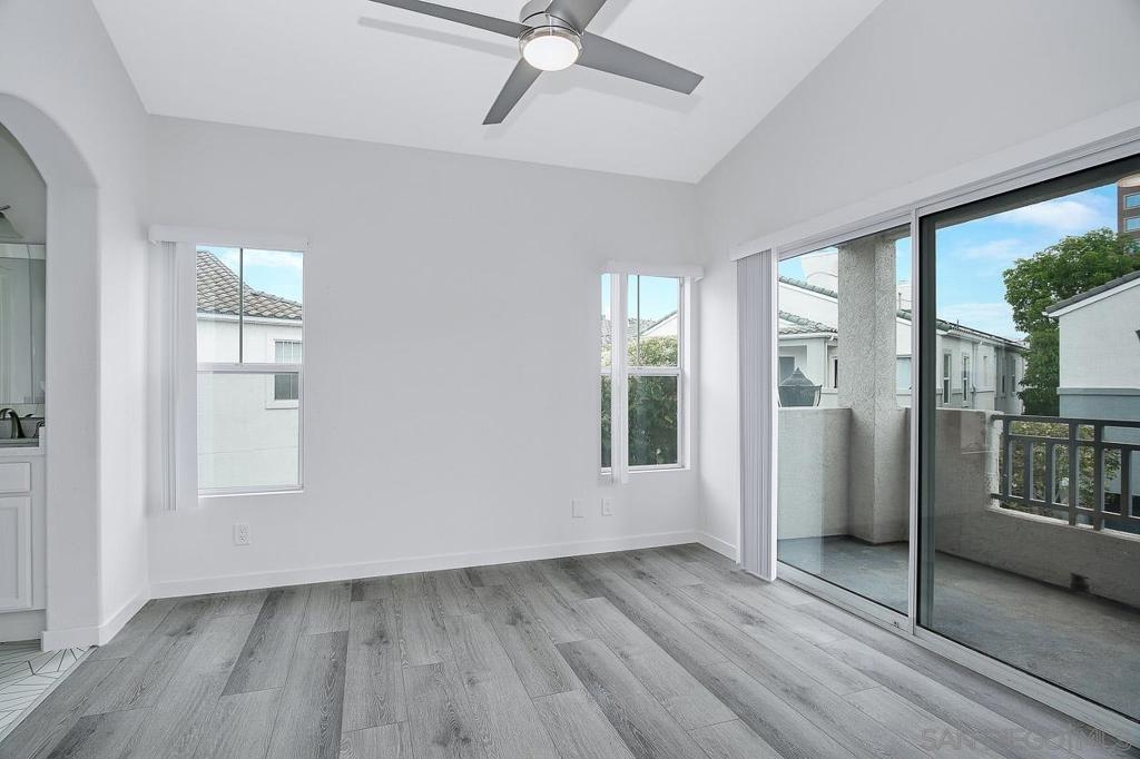 Newly remodeled light and bright townhome at Union Square in Hazard Center. Fully gated community includes pool, spa, and gas grilling as well as direct access to San Diego River trails. Remodel includes brand new finishes throughout: new flooring, kitchen and bath countertops, new showers and baths, new kitchen appliances and a private one car garage with laundry in unit. Walking distance to Hazard Center shopping and dining.
