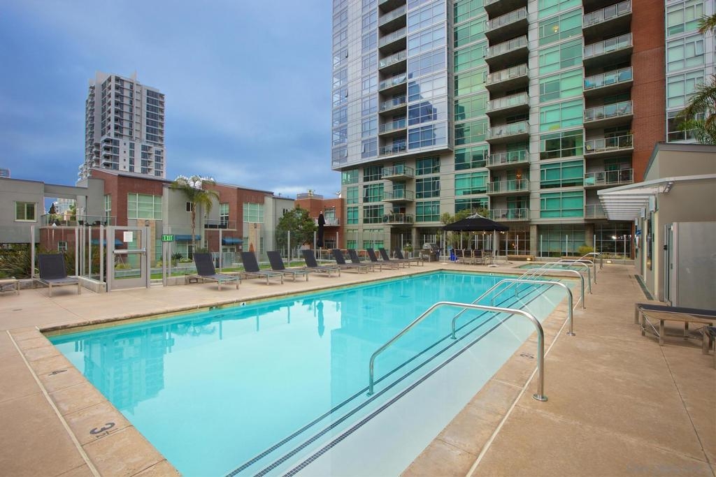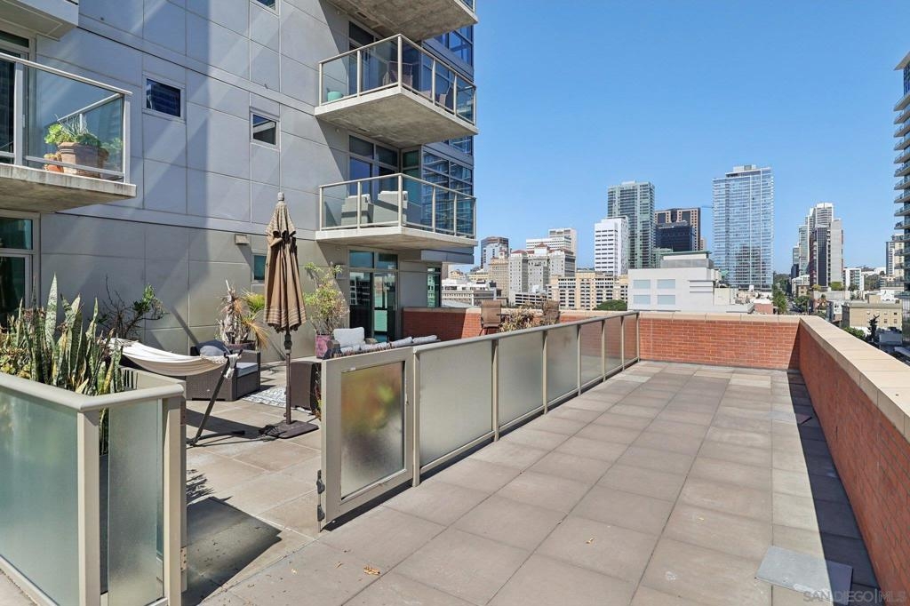 Welcome to this entertainer’s dream in the heart of downtown! A truly one-of-a-kind corner unit boasting an expansive 750 sq. ft. private patio, perfect for soaking in the morning sun, relaxing in the afternoon shade, and entertaining under the city lights. With over 1,858 sq. ft. of combined indoor/outdoor living space, this home is larger than many 2-bedroom units and offers a rare blend of luxury, space, and functionality. Step inside to find an updated kitchen and bath, soaring floor-to-ceiling windows, and high ceilings that flood the home with natural light and frame spectacular city skyline and bay views. The open floor plan includes a spacious living area with a large screen and projector setup, an extra nook ideal for a home office or den, and ample storage throughout. Additional features include upgraded stainless steel appliances, 2 parking spaces located across from one another, and a private storage room. All this, just 2 blocks from Petco Park and 3 blocks to the historic Gaslamp Quarter. Must see to appreciate!