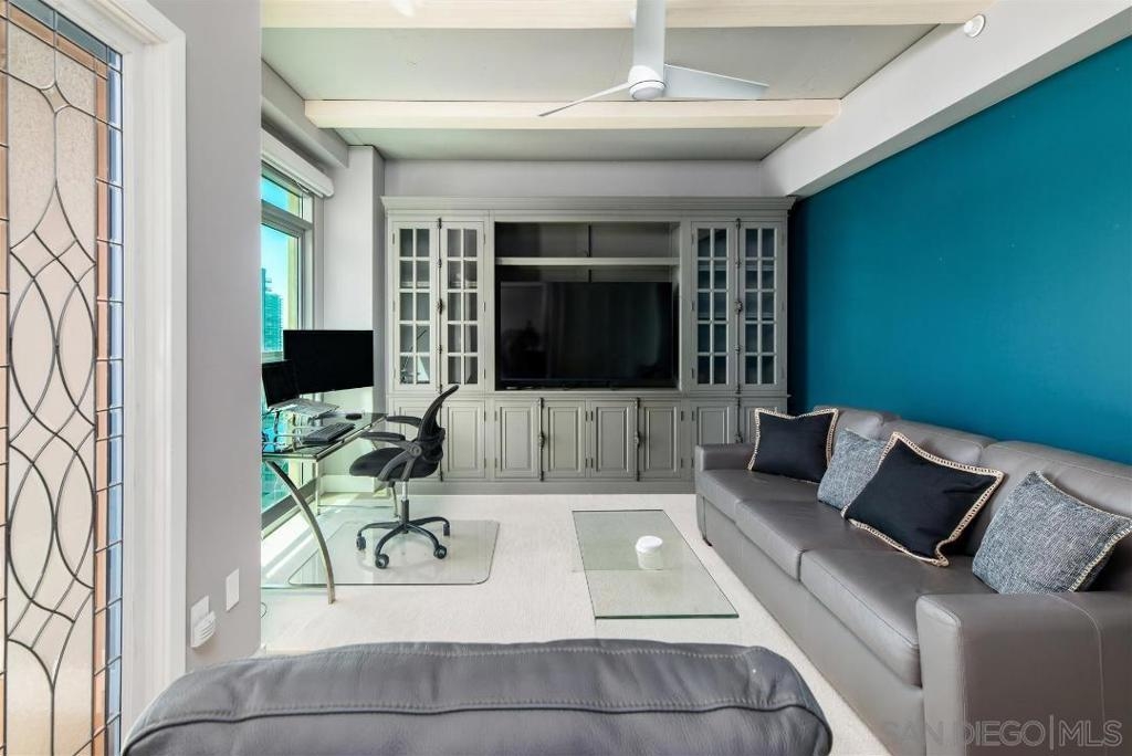 Turn key, stunning condo w/Panoramic views of bay, bridge, city, & mountains from every room! Expansive open concept, 10ft beam ceilings & floor to ceiling windows w/ custom electronic shades. Professionally decorated & completely remodeled to perfection w/high end finishes THROUGHOUT! Chefs dream kitchen complete with a complete Thermador appliance suite, wine fridge, copper trough sink & marble countertops. Custom designed his & hers luxury closets, wood floors & custom lighting. Chandelier in living room & 2nd bedroom/office wall system, both from Restoration Hardware will convey. Assigned storage unit & parking space. Steps to restaurants, Balboa Park, Tweat Street Park, Little Italy, Bankers Hill, Hillcrest & 10 minutes to the airport. *PARKING SPACE IS ON P2 SPACE #27 *STORAGE SPACE IS ON P3, STORAGE ROOM 10, ROOM 3 NEXT TO PARKING SPACE 40.