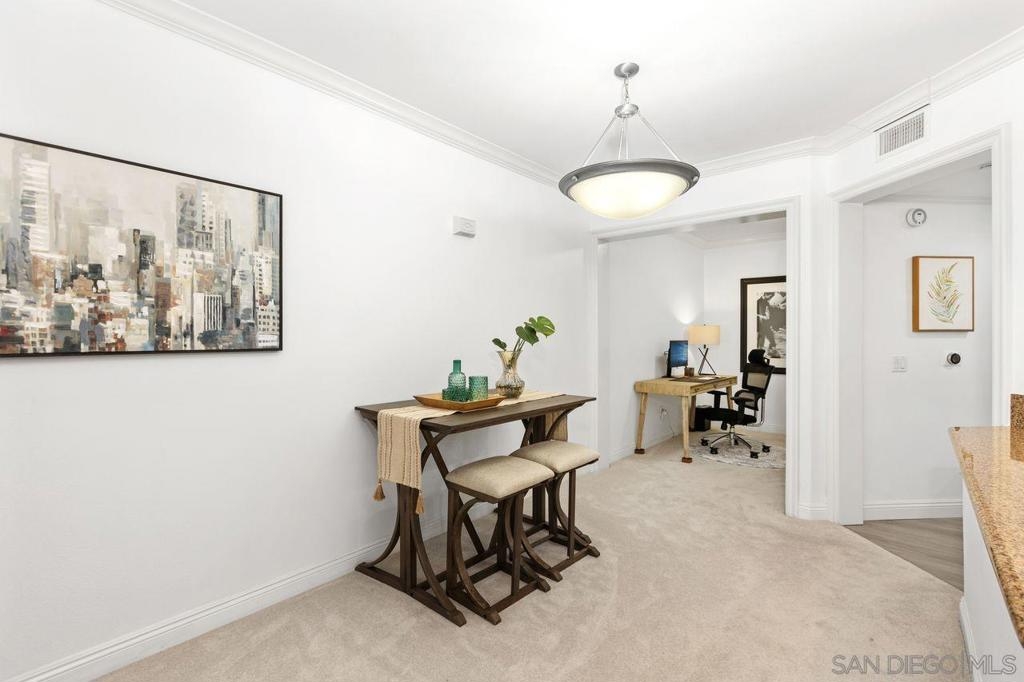 Lovely Lido condo in the heart of Mission Valley featuring 1 bedroom plus a bonus room/office/den. Upon entry you are greeted with your Chef's kitchen with granite counters, gas range, and farmhouse style sink all open to your spacious living and dining areas perfect for entertainment and enjoyment. Primary bedroom flooded with natural lighting and ensuite access to your bathroom with multiple closets and storage. Gorgeous bathtub with whole wall shower tiles and mosaic design. Optional second room perfect for a guest room, office, den, and more! Luxury in unit washer/dryer! Located on the second level with a private patio and serene view with storage closet. One assigned parking space in a gated underground garage and plenty of first come, first serve street parking. Central A/C and heating equipped. Interior designer paint, newer luxury plush carpets, and crown moulding. Unit also features a designated locker storage which is included! Welcome to a resort paradise in the Lido community with unlimited amenities featuring two community pools/spas inviting you to lounge or have a festive BBQ, courtyard open firepits for cozy winter nights, exquisite clubhouse with pool table and full kitchen perfect for hosting a large gathering, fitness room/gym, and much more! Just steps to the San Diego river trails perfect for outdoor activities. Conveniently located to unlimited shopping with Rio Vista Shopping center nearby, Fashion Valley Westfield mall, Trader Joe's, Target, Best Buy, and more! Close access to freeways 5, 15, 805, 163, and 8. Minutes to the beaches, downtown San Diego, Balboa park,San Diego airport, and much more. This is a must see!