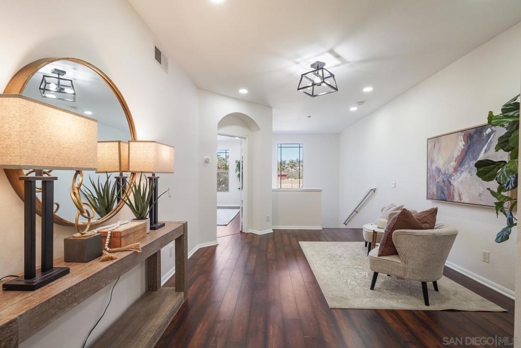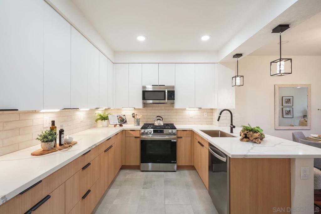 This beautifully renovated tri-level townhome is move-in ready, featuring fresh interior paint and brand-new lighting fixtures throughout. The updated kitchen is equipped with new stainless steel appliances, including a 30" gas range, microwave, dishwasher, and refrigerator. It also boasts quartz countertops, shaker-style cabinetry, a stylish tile backsplash, and recessed and pendant lighting, with a breakfast counter that opens to the spacious living area. The home offers wood floors throughout, laminate flooring in the laundry room, and tile in the powder bath, hall bath, and primary bath, all with reglazed tubs and showers for a fresh, updated look. Additional updates include new vanity sinks and toilets in all three bathrooms, a quartz countertop in the hall bath, and upgraded showerheads, faucets, and valves. With low HOA fees, this townhome has modern updates and is centrally located, making it a fantastic choice for comfortable and convenient living.