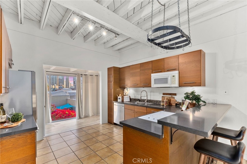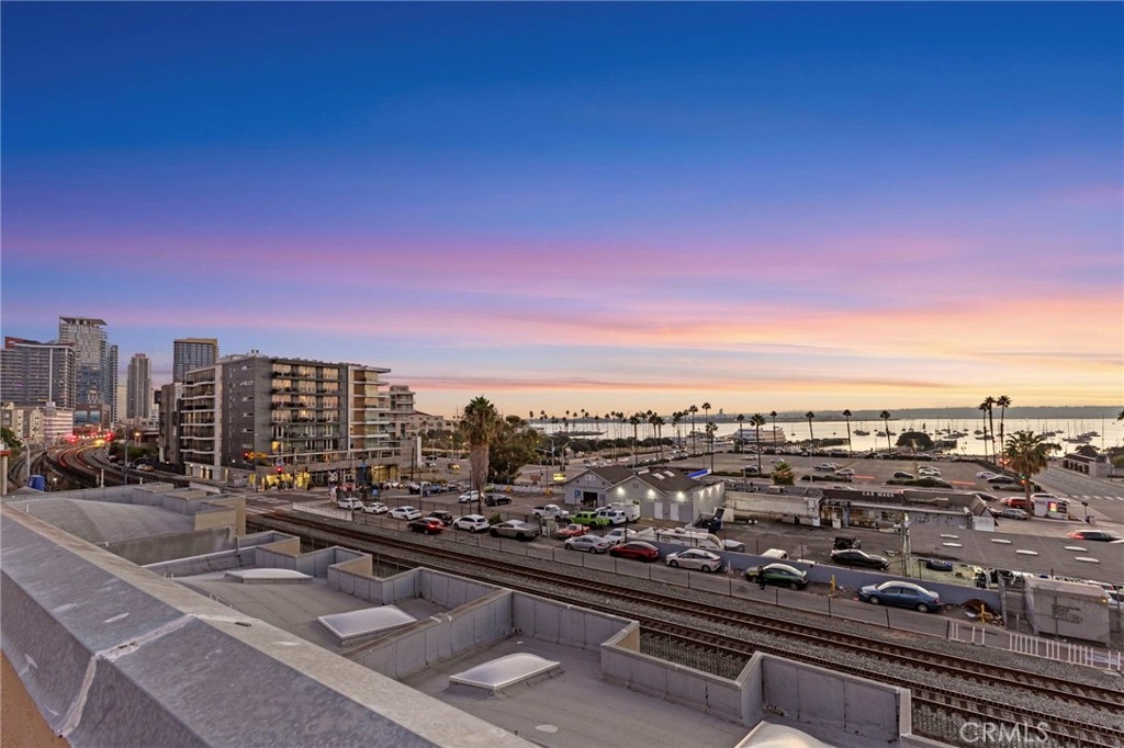 Experience coastal living at its finest in this stunning residence located in the heart of Little Italy, just steps from San Diego Bay. This spacious and airy 2 bedroom, 2 bath loft-style condo offers breathtaking panoramic views of the marina, city skyline, and vibrant sunsets over the water. The interior blends modern comfort with coastal charm, featuring soaring open-beam ceilings, exposed brick, and expansive windows that fill the home with natural light. The open-concept kitchen includes sleek countertops, custom cabinetry, and stainless-steel appliances, seamlessly connecting to the dining area and living space, perfect for entertaining or relaxing while overlooking the harbor. Each bedroom is uniquely positioned for privacy and comfort, highlighted by vaulted ceilings, natural light, and serene neutral tones. Both bathrooms have been fully updated with modern vanities, elegant tile, deep soaking tub and glass-enclosed shower. Enjoy effortless indoor-outdoor living from your rooftop terrace ideal for morning coffee or evening sunsets over the marina. Additional features include an in-unit laundry, luxury plank flooring, 1 covered parking spot, and a storage closet. Located just steps from the waterfront, cafes, restaurants, and the iconic Little Italy sign, this residence offers a rare blend of sophistication and coastal charm in one of San Diego’s most sought-after neighborhoods. A perfect urban retreat where modern design meets endless views.