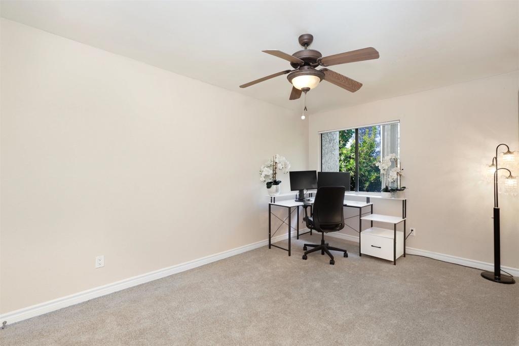 Discover the epitome of comfort and style in this beautiful top-floor condo located in the desirable Cantabria community of Rancho Penasquitos! This freshly updated gem boasts new carpet, a brand new microwave, and designer lighting fixtures that enhance its charm. Enjoy a thoughtfully designed open floor plan featuring a cozy granite fireplace, crown molding, and ceiling fans, complemented by a wall A/C for year-round comfort. The kitchen and bathroom showcase newer cabinetry, with the kitchen further highlighted by a stunning mosaic stone and glass backsplash and sleek stainless steel appliances. The spacious primary bedroom includes a generous walk-in closet, while an in-unit laundry closet adds convenience. Enjoy your private patio, perfect for relaxation, dining al fresco, or entertaining guests. Cantabria residents benefit from an array of resort-style amenities including a pool, spa, gym, clubhouse, playground, BBQ area, tennis/pickleball courts, volleyball courts, and a dog park. Situated close to award-winning Poway Unified District Schools, Del Mar beaches, scenic hiking trails, freeways, bike lanes to the beach, parks, shopping, dining, and entertainment, this condo offers an exceptional lifestyle. Don’t miss out on this incredible opportunity—welcome home!