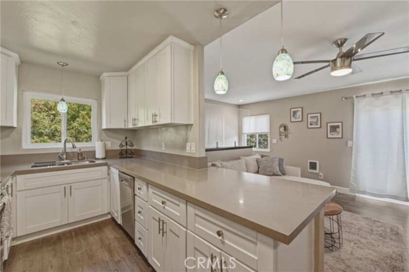 2 bed townhouse in Rancho Peñasquitos offering mountain views, privacy, and tasteful updates in the desirable Penasquitos Knolls community within Poway Unified School District. This move in ready end unit features no neighbors above or below, creating a quiet and comfortable living experience. Enjoy scenic mountain views from your private balcony and natural light throughout. Interior upgrades include newer flooring, dual pane windows, an updated sliding glass door, and a remodeled kitchen with quartz countertops, stainless steel appliances, and a large peninsula providing abundant storage and prep space. The remodeled bathroom offers a walk in shower and tiled flooring. The spacious primary bedroom and full size laundry closet add everyday convenience. A one car garage provides secure parking and storage. The front common area feels like an extension of the home, similar to a private patio, thanks to the end unit positioning and lack of a direct side neighbor. HOA covers water and trash. Located in Rancho Peñasquitos, residents enjoy access to parks, trails, shopping, and major commuter routes while benefiting from the highly regarded Poway Unified School District. If you are looking for a 2 bed townhouse in Rancho Peñasquitos that blends privacy, views, and updated finishes, this property delivers.